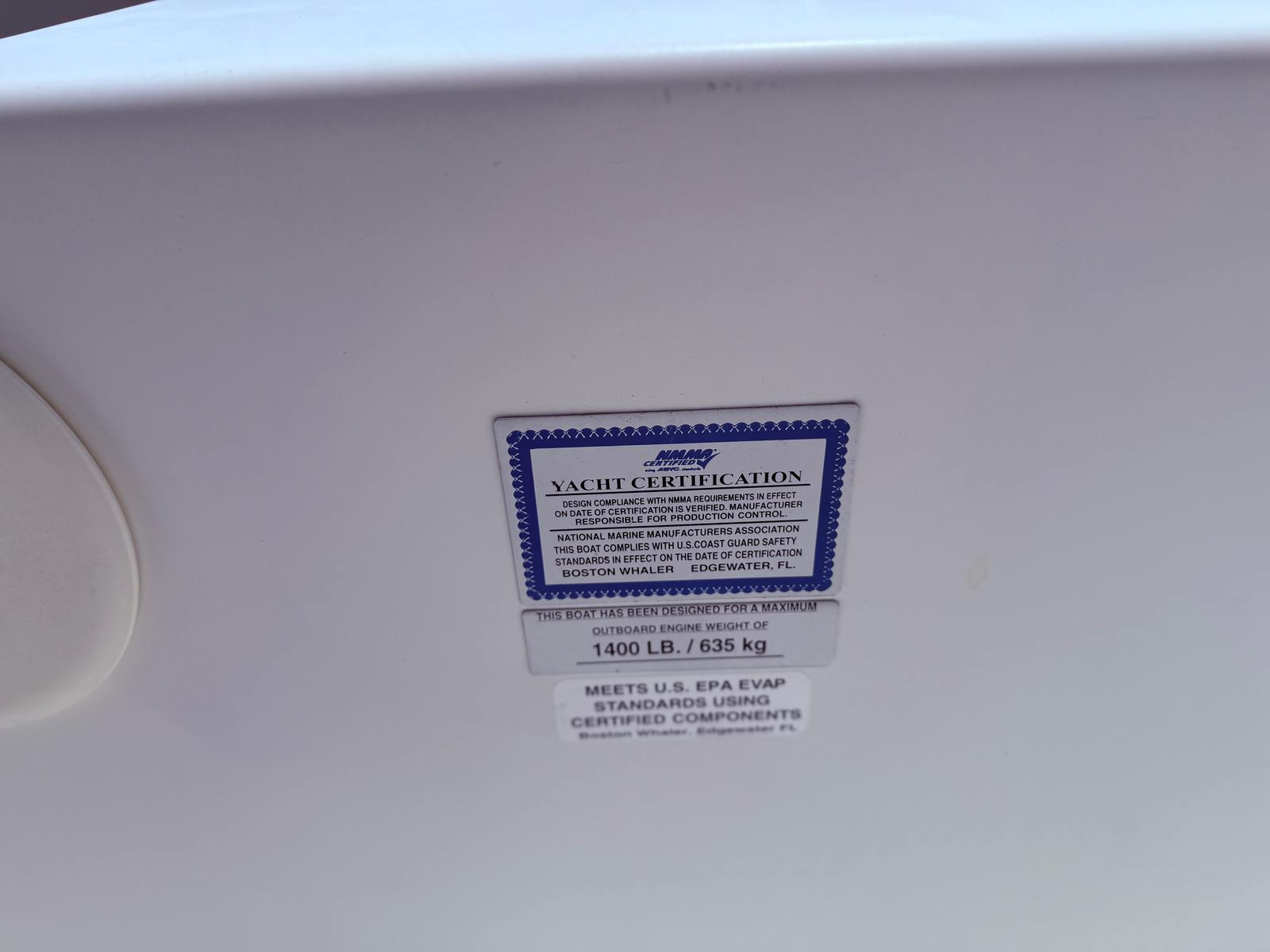 Powering the 2014 Boston Whaler 27 Dauntless are two reliable engines, combining for a total of 400 horsepower. This dual-engine setup ensures robust acceleration, smooth handling, and the confidence to tackle a wide range of boating activities. The twin engines provide enhanced maneuverability, making docking and navigating tight spaces a breeze. With 400 horsepower at your command, you’ll enjoy thrilling speeds and responsive performance whether you’re cruising, fishing, or simply enjoying a leisurely ride. The Boston Whaler 27 Dauntless is engineered for efficiency and reliability, giving you peace of mind every time you hit the water.