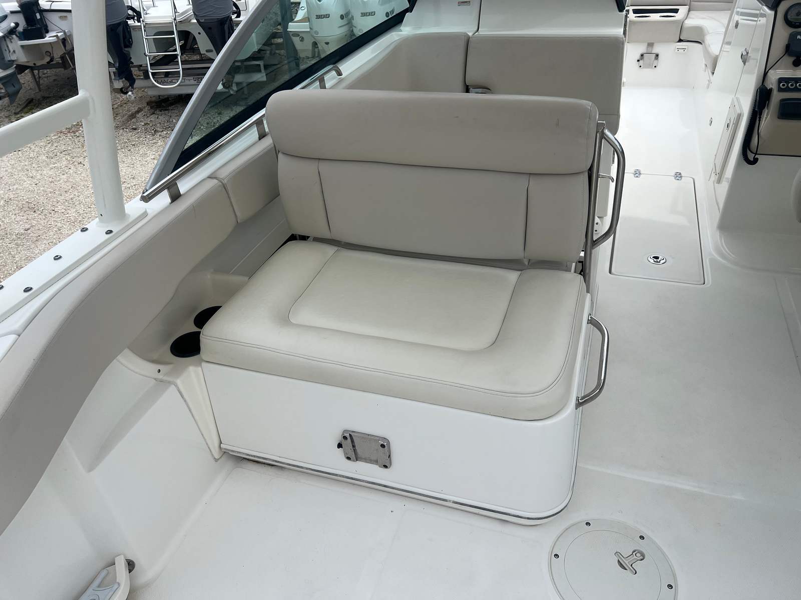 Powering this Boston Whaler 270 Vantage are twin engines, delivering a combined 600 horsepower. With 740 engine hours, these engines have proven their reliability and are primed for many more seasons of use. The dual-engine setup ensures smooth acceleration, responsive handling, and the ability to tackle a variety of water conditions with confidence. Whether you are cruising along the coastline, heading out for a day of fishing, or enjoying water sports, the performance of this boat is sure to impress. The 270 Vantage’s hull design enhances stability and ride comfort, making every journey enjoyable for both captain and passengers.