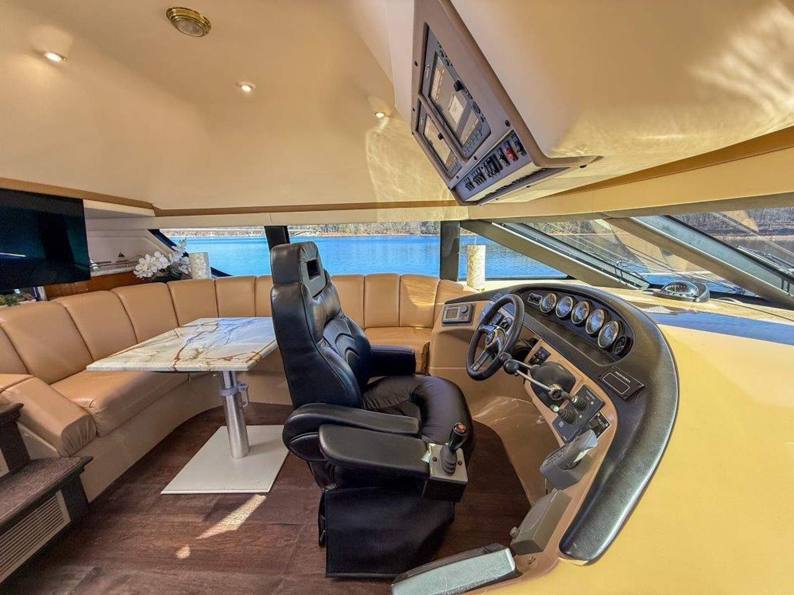 Below deck, the yacht features a three-stateroom layout, generous pilothouse seating, and a full-beam master suite, making her ideal for extended cruising or luxury liveaboard use. Her previous owner brought her down from Tennessee, and she currently resides under cover on Lake Lanier, preserving her freshwater condition.