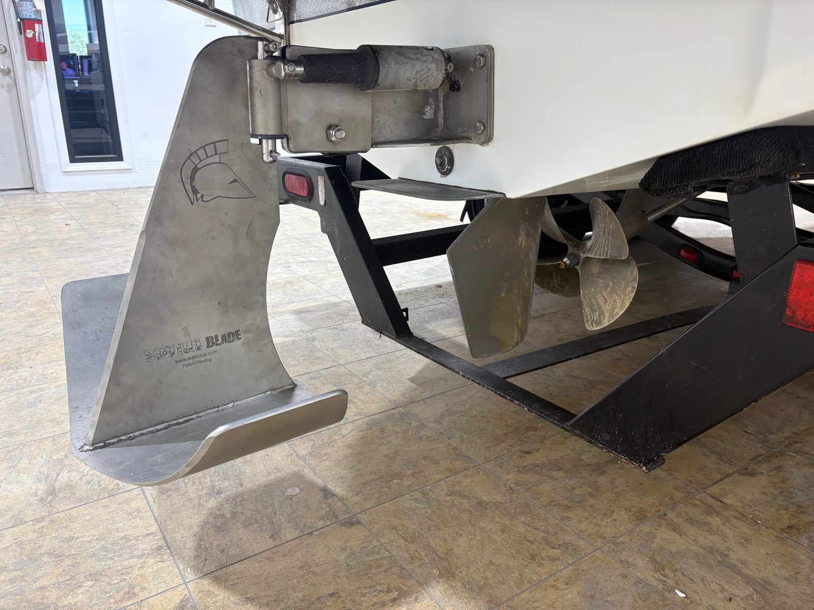 Practicality meets performance in this Centurion boat for sale. The mooring cover simplifies storage and protects your investment, while the efficient single-engine setup helps keep fuel costs manageable. Docking is a breeze thanks to the boat’s responsive handling and well-designed hull. The ballast system and Switchblade Wake Tab allow you to tailor the wake for different activities, making it easy to switch between wakeboarding, skiing, and casual cruising.The dual board racks maximize storage space, keeping the deck uncluttered and safe. The collapsible bimini top is easy to deploy and stow, adapting to changing weather conditions with minimal effort. Interior courtesy lights enhance visibility and safety during nighttime adventures, ensuring you can enjoy the water from dawn to dusk. With the Centurion Enzo SV230, every aspect of ownership is designed to be straightforward and enjoyable.