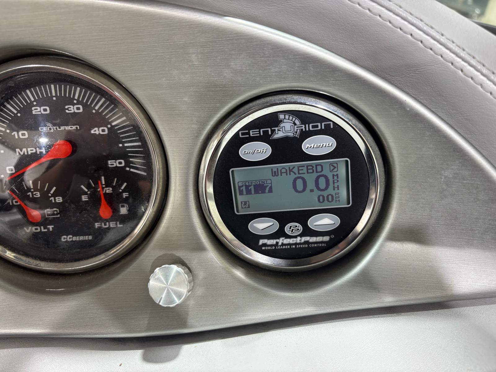 This Centurion boat for sale is packed with special features that set it apart from the competition. The mooring cover provides essential protection, keeping your investment safe from the elements when not in use. The wakeboard tower is a standout addition, offering the perfect platform for aerial tricks and stunts, while the dual board racks ensure your gear is always organized and within reach. The collapsible bimini top offers shade and comfort, making long days on the water more enjoyable.For those who love music, the updated Bluetooth stereo system lets you stream your favorite playlists and keep the party going. The Switchblade Wake Tab and ballast system work together to create customizable wakes, catering to riders of all skill levels. Perfect Pass Speed Control ensures consistent speeds for towing, making it easier for skiers and wakeboarders to perform at their best. Interior courtesy lights add a touch of elegance and safety for evening outings, rounding out the boat’s impressive list of amenities.