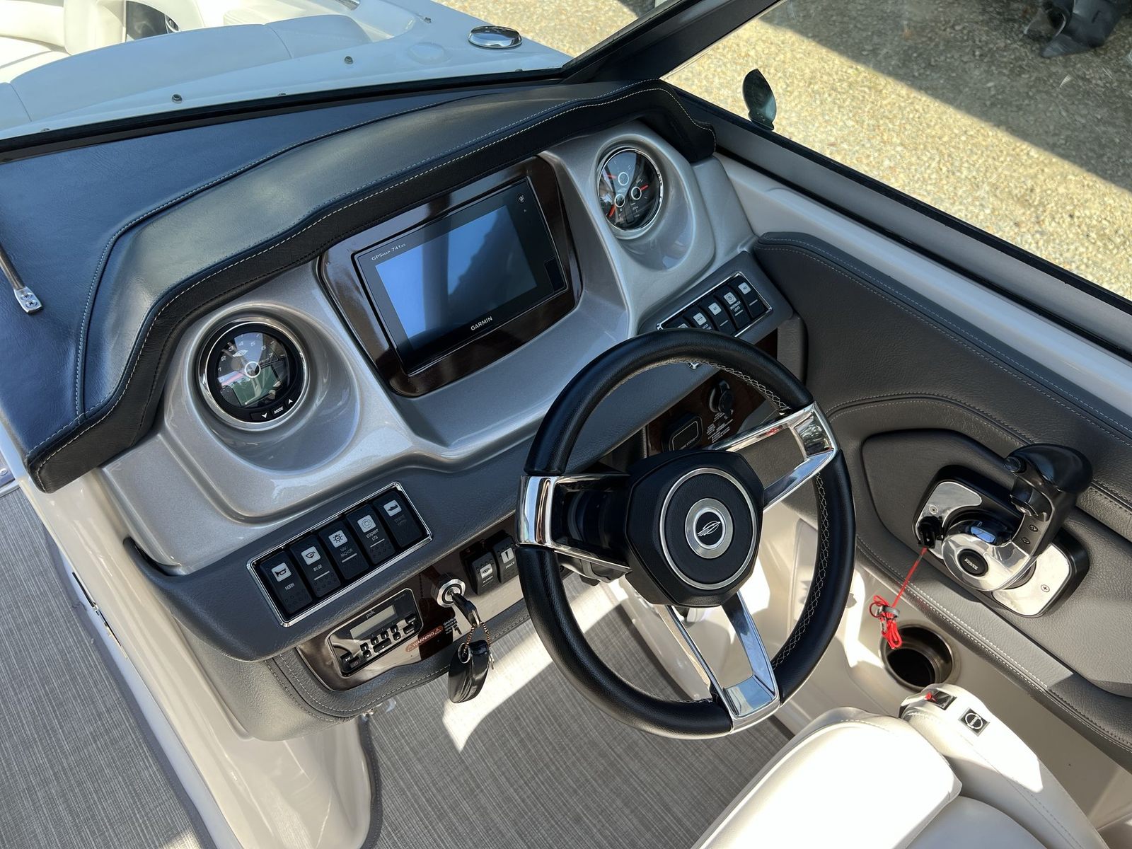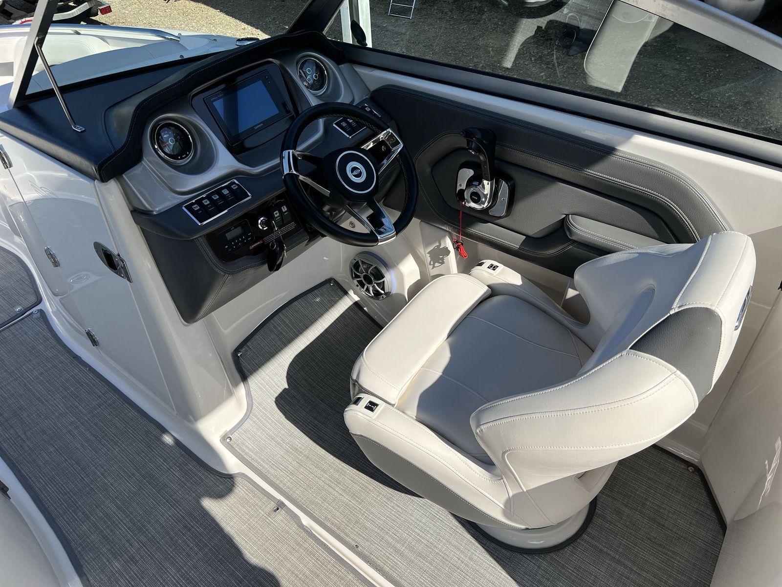 Practicality is at the core of the Chaparral 264 Sunesta’s design. The ample storage compartments keep your gear organized and out of the way, so you can focus on enjoying your time on the water. The boat’s manageable length makes docking and maneuvering a breeze, even for those new to boating. Fuel efficiency is another key benefit, allowing you to spend more time cruising and less time refueling.The swim platform and easy-access ladder make water activities simple and enjoyable, whether you’re swimming, snorkeling, or launching paddleboards. The thoughtful layout ensures that every inch of space is used efficiently, maximizing comfort and convenience for all on board.