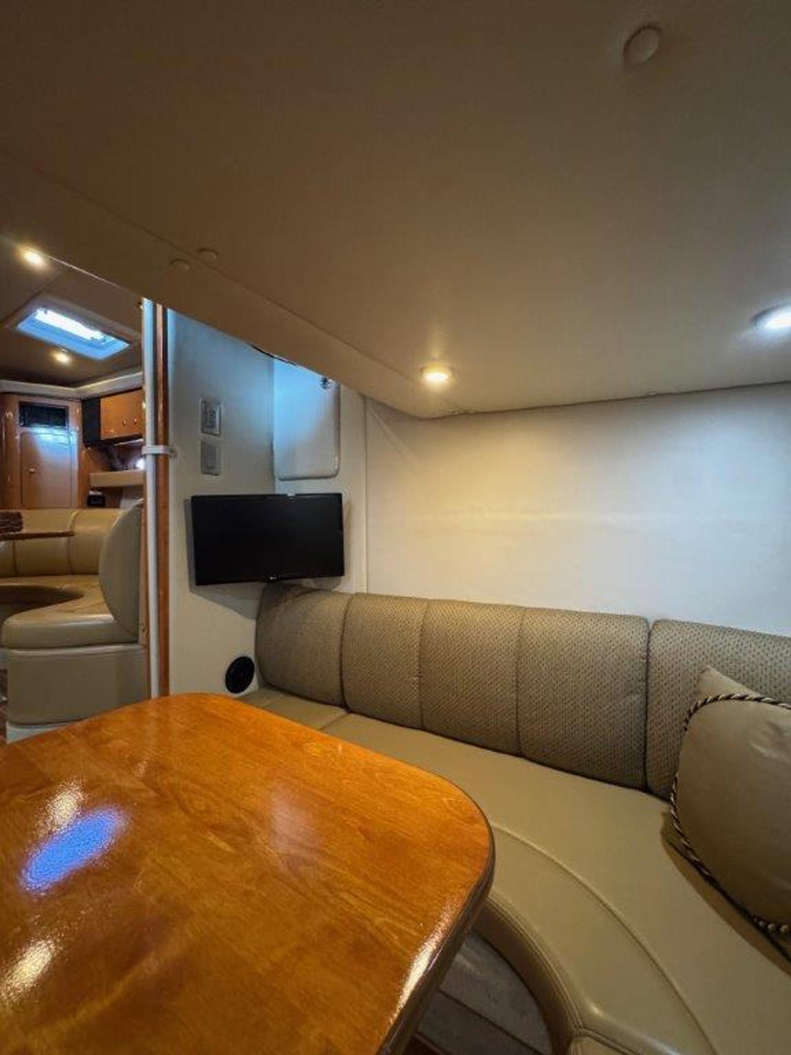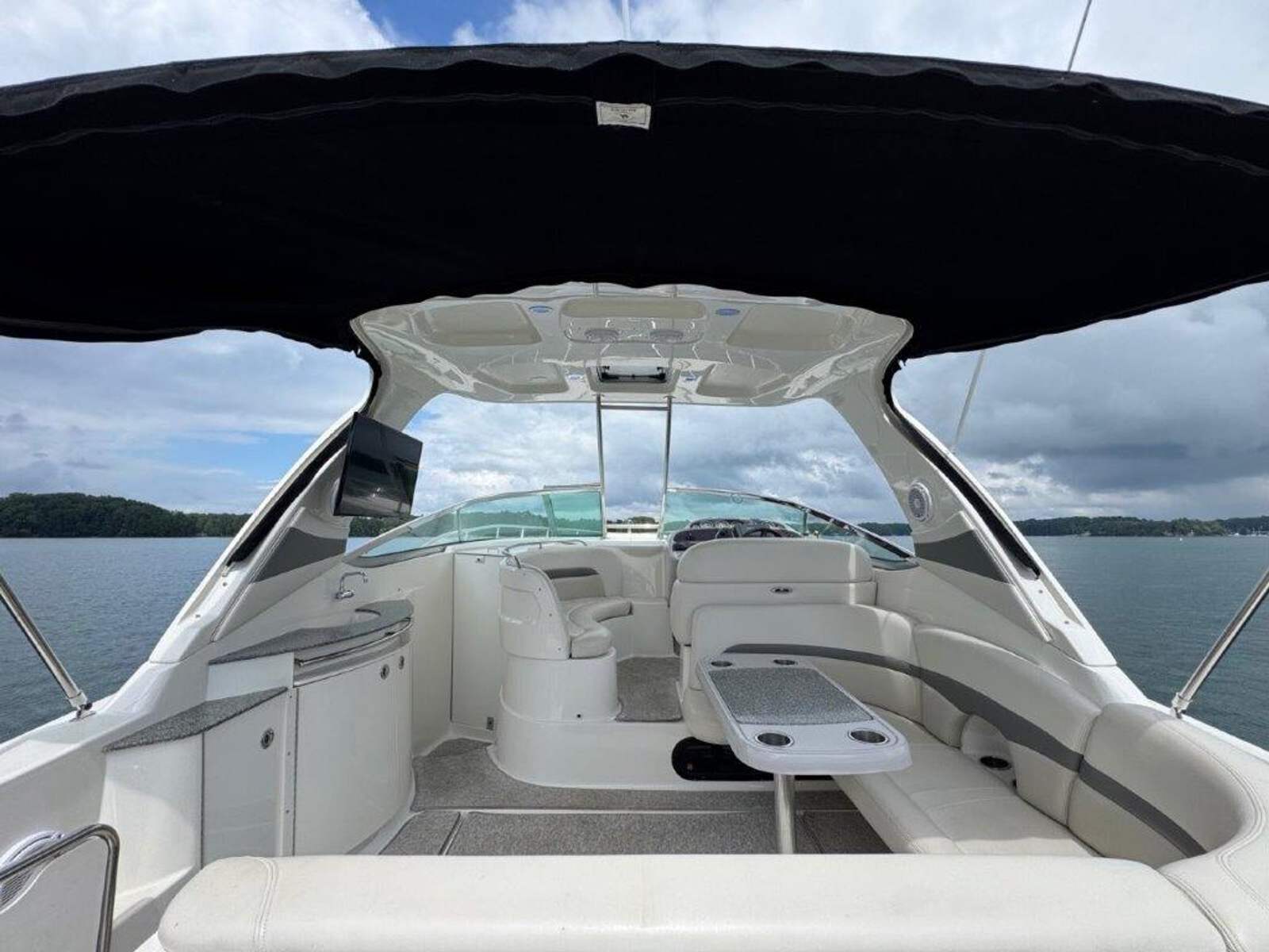 The 350 Signature is designed for entertaining and cruising, offering a spacious cockpit with abundant seating and a thoughtful layout for both day trips and extended stays. Upholstery is in excellent condition, and the full enclosure provides all-weather comfort. The hardtop offers shade while the walk-through windshield allows easy access to the bow and Princess Pad.