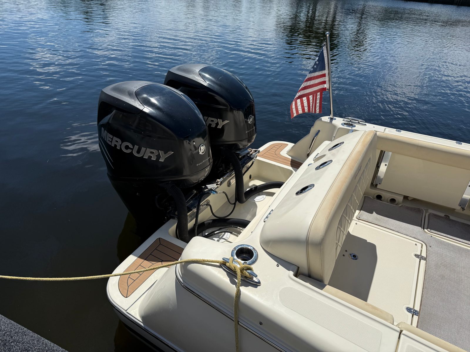 • Fold-away aft cockpit seating includes: Transom Bench, (2) Port and (1) Starboard seats