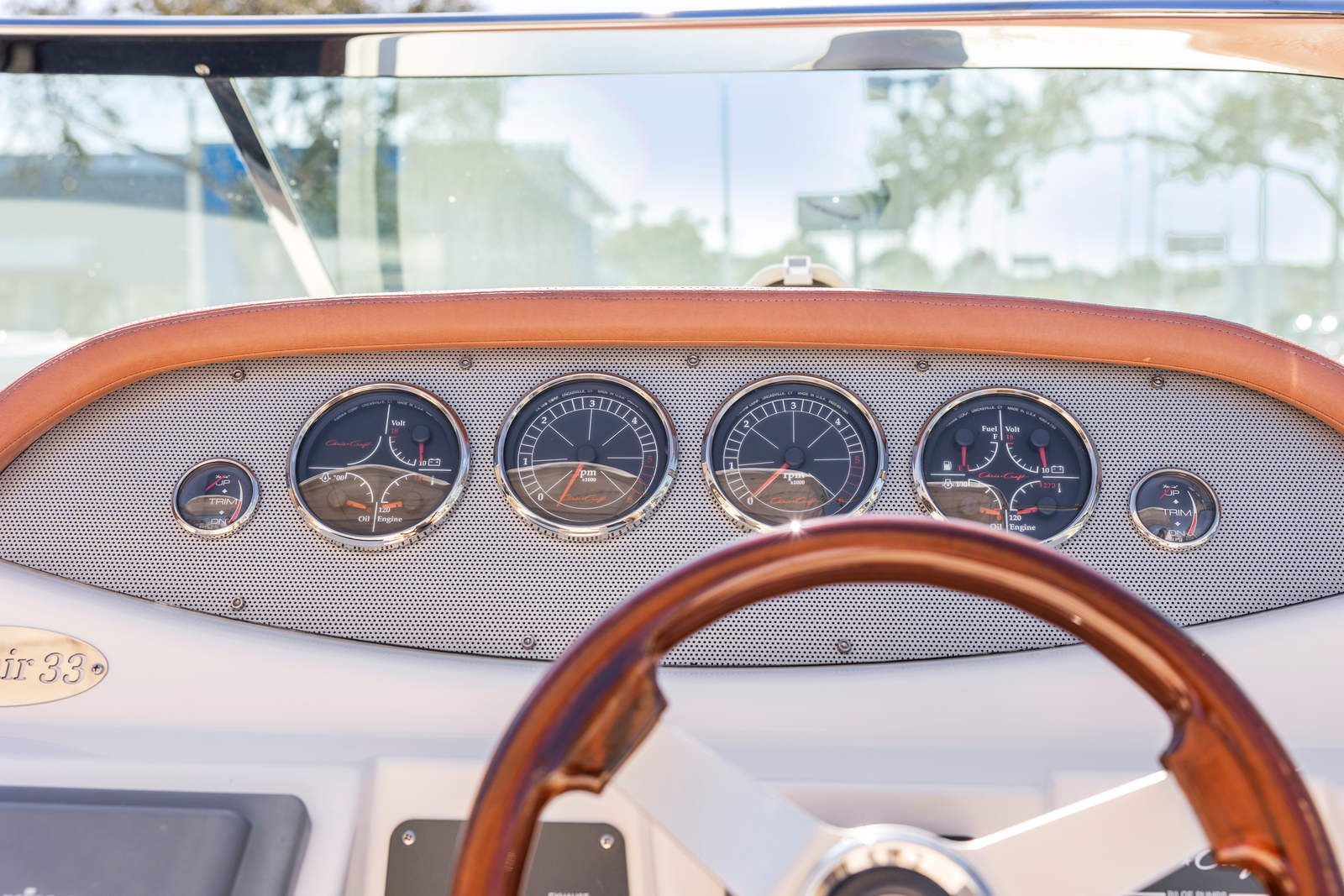 Power and performance are at the heart of the Chris-Craft Corsair 28. Equipped with twin engines delivering a combined 600 horsepower, this bowrider is built for speed, agility, and smooth handling. The dual-engine setup ensures responsive acceleration and reliable power, whether you are cruising along the coastline, pulling water toys, or making a quick dash to your favorite waterfront destination. With only 268 hours on the engines, you can be confident in the longevity and dependability of this vessel. The Corsair 28’s hull design provides a stable and comfortable ride, even in choppier waters, allowing you to enjoy every outing to the fullest.