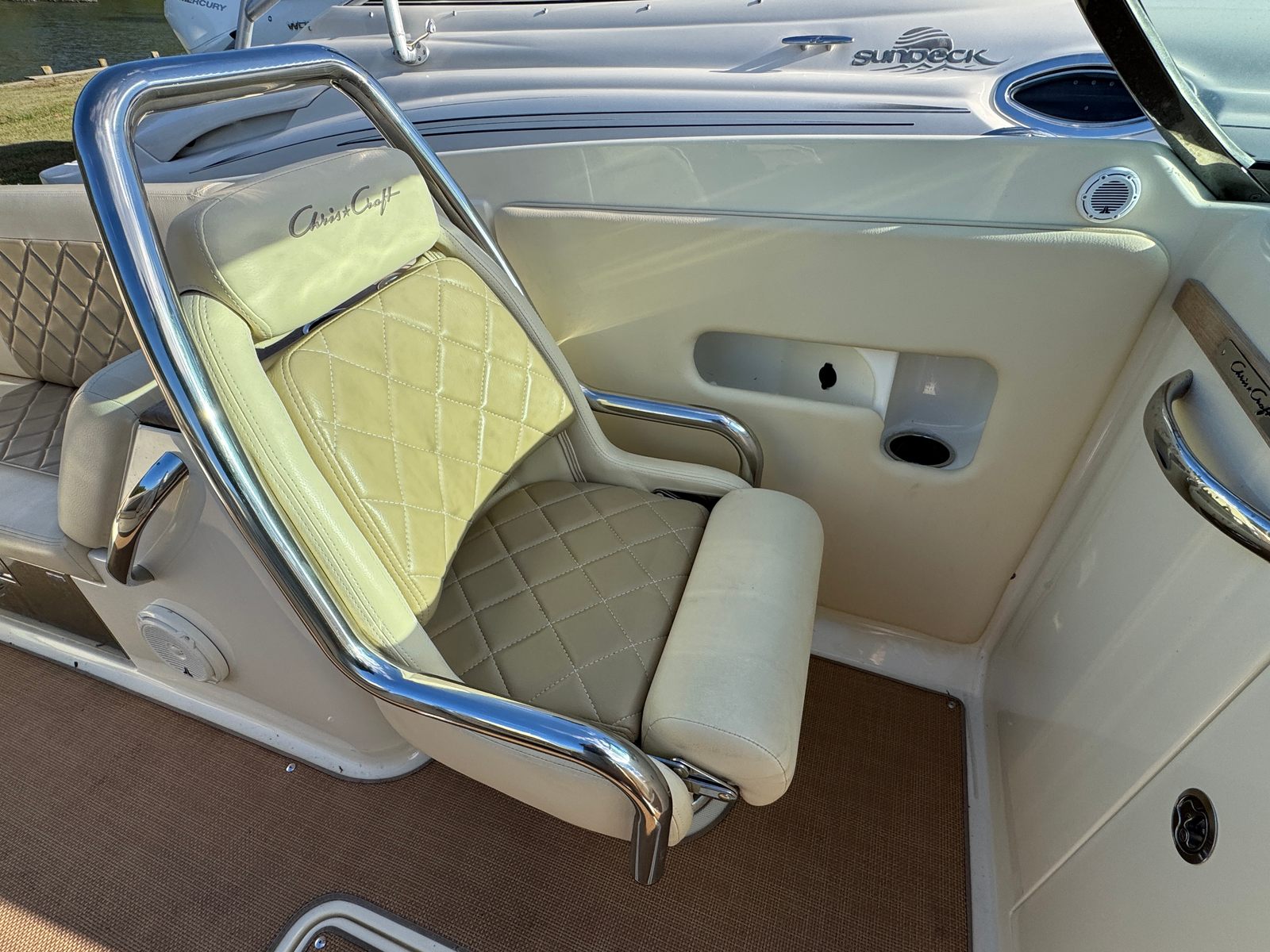 The versatility of the Chris-Craft 25 Launch makes it an excellent choice for a wide range of activities. It is perfect for family outings, offering a safe and comfortable environment for children and adults alike. The spacious bow and cockpit areas are ideal for socializing, making this bowrider a great platform for hosting friends or celebrating special occasions. For those who love water sports, the powerful engine provides plenty of thrust for tubing, wakeboarding, or skiing. The boat’s elegant design and luxurious touches also make it a standout choice for romantic sunset cruises or leisurely days exploring new waterways. Whether you are seeking adventure, relaxation, or a bit of both, the 25 Launch adapts effortlessly to your needs.
