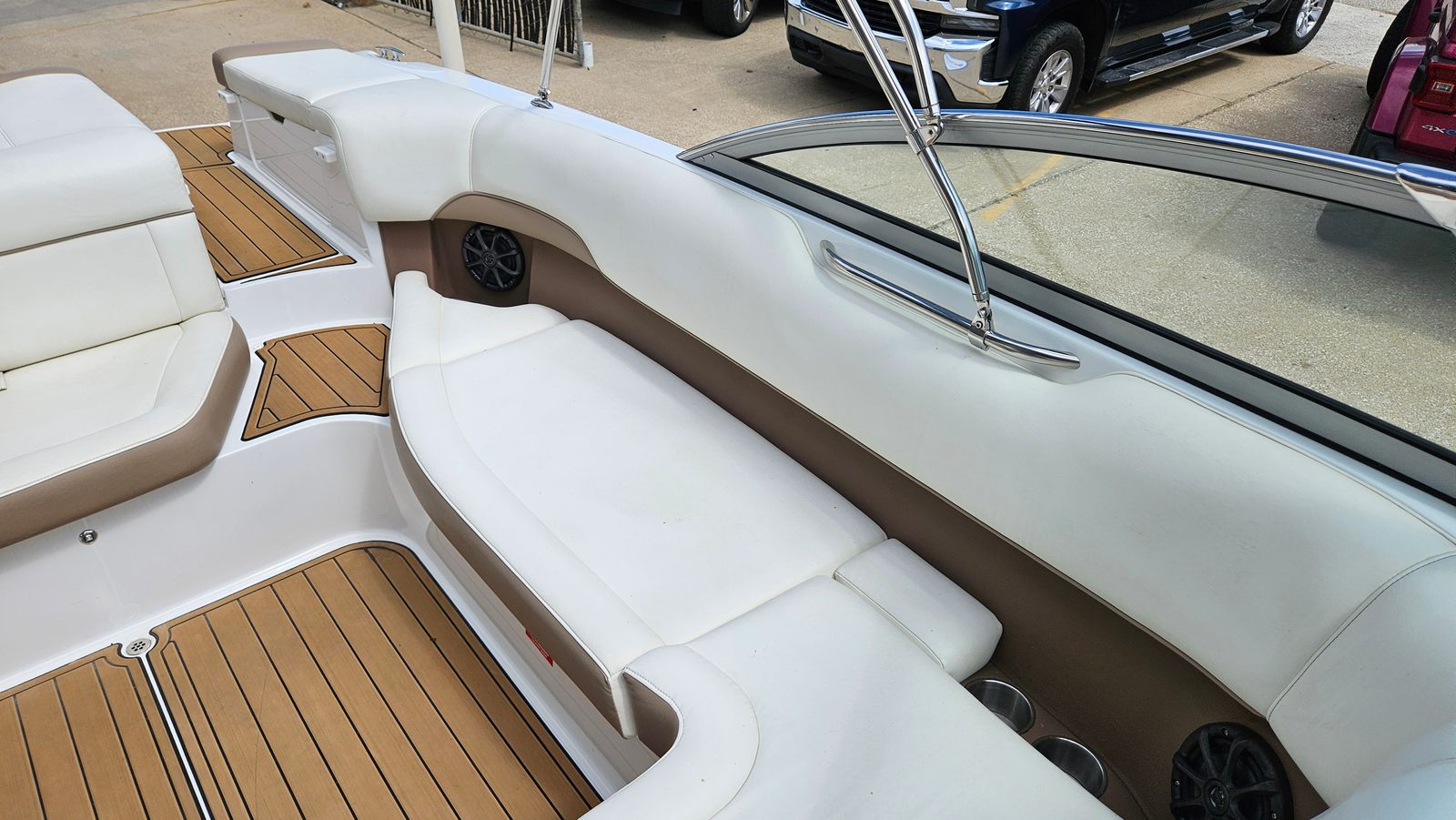 This used Cobalt boat for sale comes equipped with a range of special features designed to elevate your boating experience. The Volvo 270HP engine ensures reliable and spirited performance, while the tandem axle trailer provides convenient transport and storage options. Counter rotating props contribute to superior handling, making every outing smooth and enjoyable. The onboard stereo system sets the perfect soundtrack for your day on the water, and the Sea Deck offers a comfortable, non-slip surface for added safety and luxury. Each feature is thoughtfully integrated to enhance both functionality and enjoyment, ensuring that every trip is memorable.