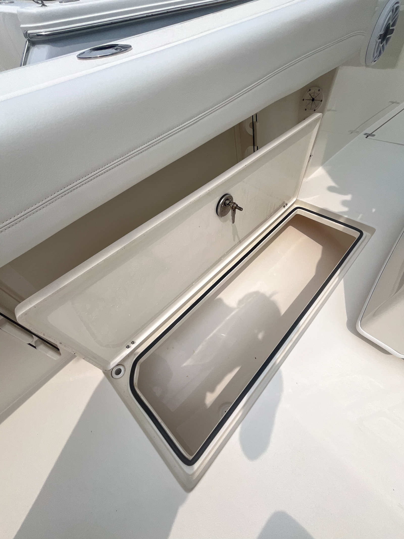 Under the hood, the Cobia 301 CC is powered by twin engines, delivering a combined 600 horsepower. With only 265 engine hours, these motors are primed for many more seasons of reliable performance. The dual-engine setup ensures impressive acceleration, smooth cruising, and the confidence to tackle offshore waters with ease. Whether you are navigating choppy seas or gliding across calm bays, the Cobia 301 CC offers responsive handling and stability, making every outing a pleasure. The powerful engines not only enhance speed but also provide the torque needed for water sports, quick getaways, and efficient travel between fishing spots.