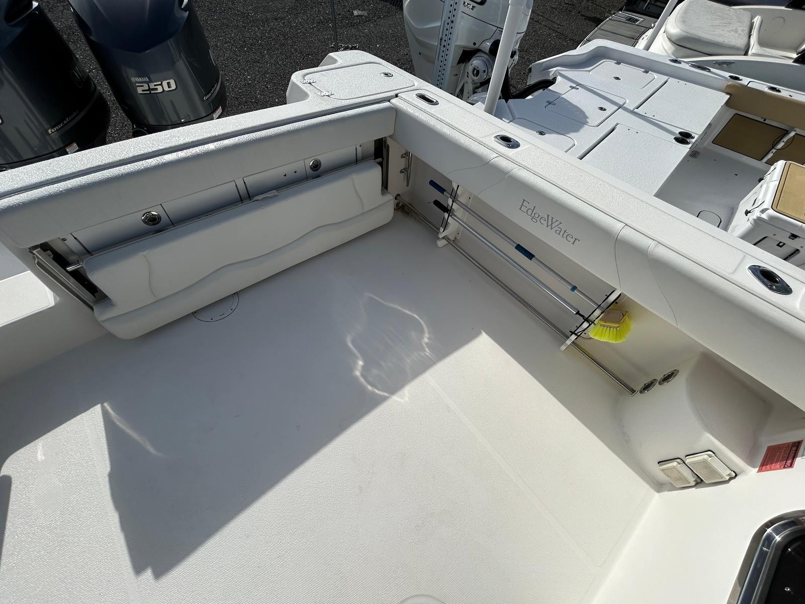 Practicality is at the heart of the Edgewater 265 EX’s design. The cruiser’s manageable length makes docking and maneuvering a breeze, even for those new to boating. Storage compartments throughout the boat provide plenty of space for life jackets, fishing equipment, and personal items, keeping the deck clutter-free and organized. The fuel-efficient twin engines help you make the most of your time on the water without worrying about frequent refueling stops, allowing you to explore further and stay out longer.Maintenance is straightforward, thanks to the accessible engine compartments and durable construction. As a used Edgewater boat for sale, the 265 EX offers the added benefit of proven reliability, so you can focus on enjoying your time on the water rather than dealing with unexpected issues.