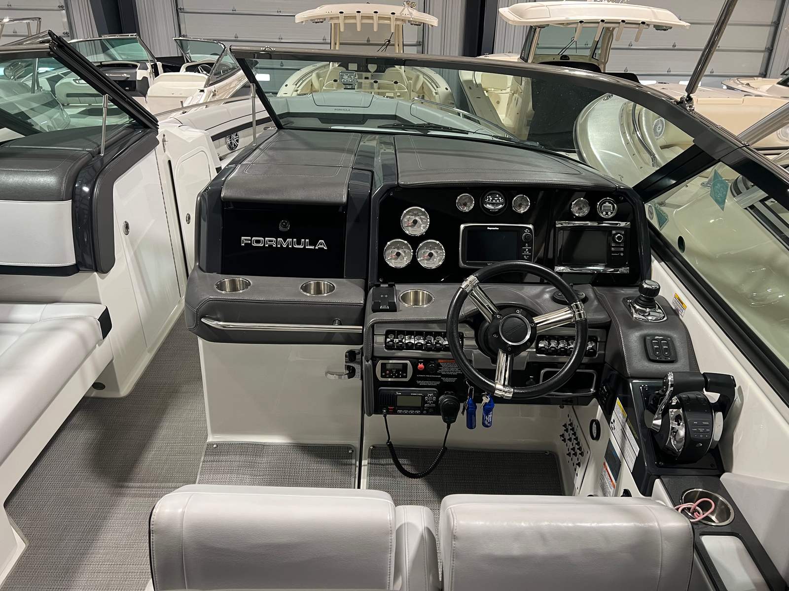 Powering the Formula 330 CBR are two robust engines, delivering a combined 760 horsepower. With 731 engine hours, these engines have proven their reliability and are ready to provide exhilarating performance for years to come. The twin-engine setup ensures smooth acceleration, responsive handling, and impressive speed, making this Formula boat for sale a true standout in its class. Whether you’re navigating open waters or docking at the marina, you’ll appreciate the confidence and control that comes with this powerful cruiser.