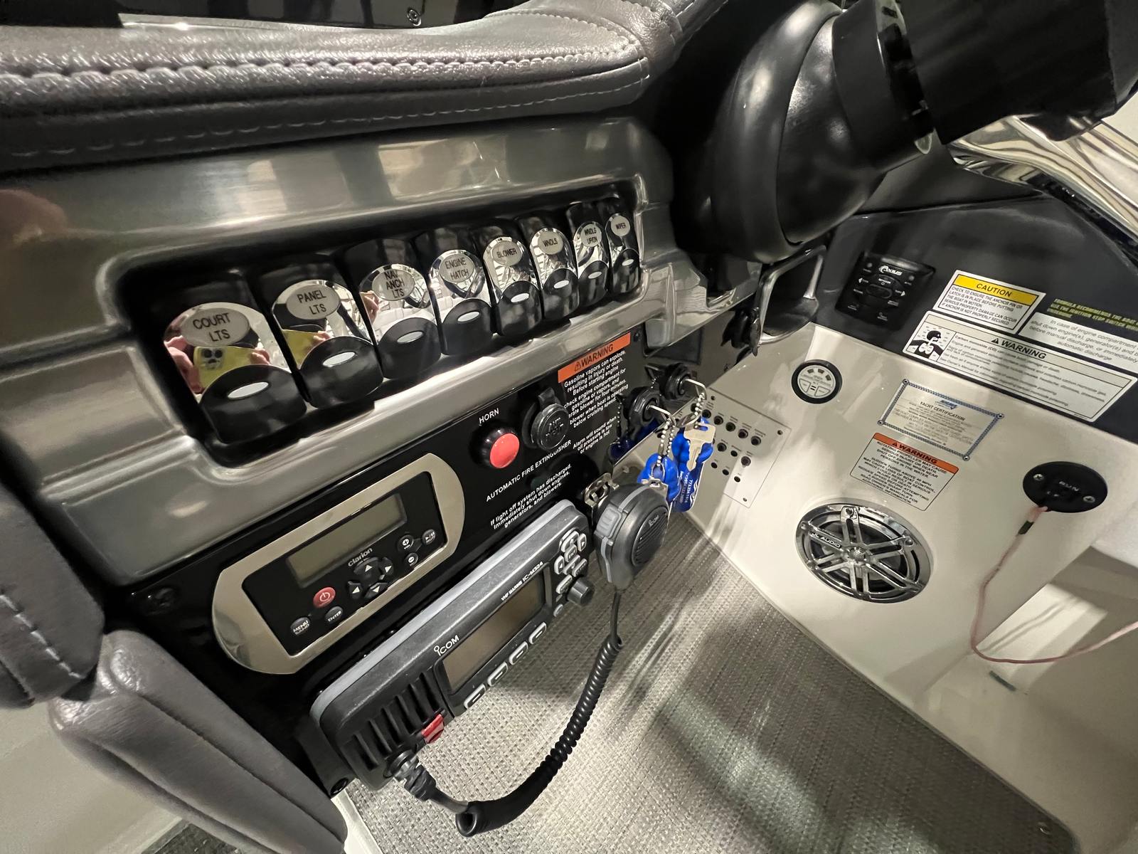 The Formula 330 CBR is designed with practicality in mind, making ownership both enjoyable and convenient. The battery charger keeps your systems running smoothly, while the bottom paint reduces maintenance requirements and helps preserve the boat’s sleek appearance. The bow and cockpit covers offer protection from the elements, ensuring your investment stays in top condition year after year. Docking and storage are made easier thanks to the boat’s manageable 33-foot length, allowing you to access a variety of marinas and slips with confidence. The twin engines provide excellent maneuverability, making docking and navigating tight spaces a stress-free experience. Fuel efficiency is enhanced by Formula’s advanced engineering, so you can spend more time on the water and less time at the pump.