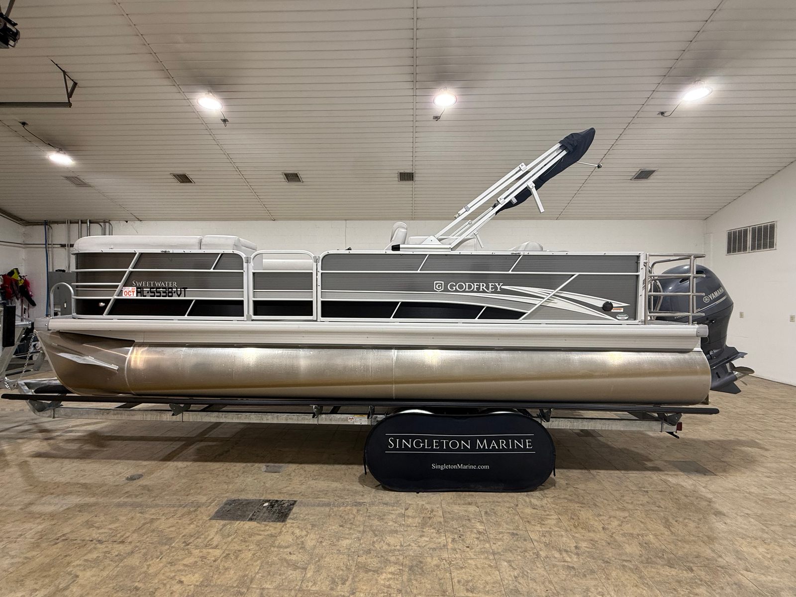 In summary, the 2023 Godfrey SW 2286 is a standout pontoon boat for sale that combines performance, comfort, and versatility in one stylish package. With its 22-foot length, 150 HP engine, and thoughtful design, this used Godfrey boat for sale offers exceptional value and endless opportunities for fun on the water. Whether you are seeking a family-friendly vessel, a platform for entertaining, or a reliable companion for your next adventure, the SW 2286 delivers on all fronts.Do not miss your chance to own this impressive pontoon boat. Contact your local dealer today to learn more about the 2023 Godfrey SW 2286 and discover how it can transform your boating experience.