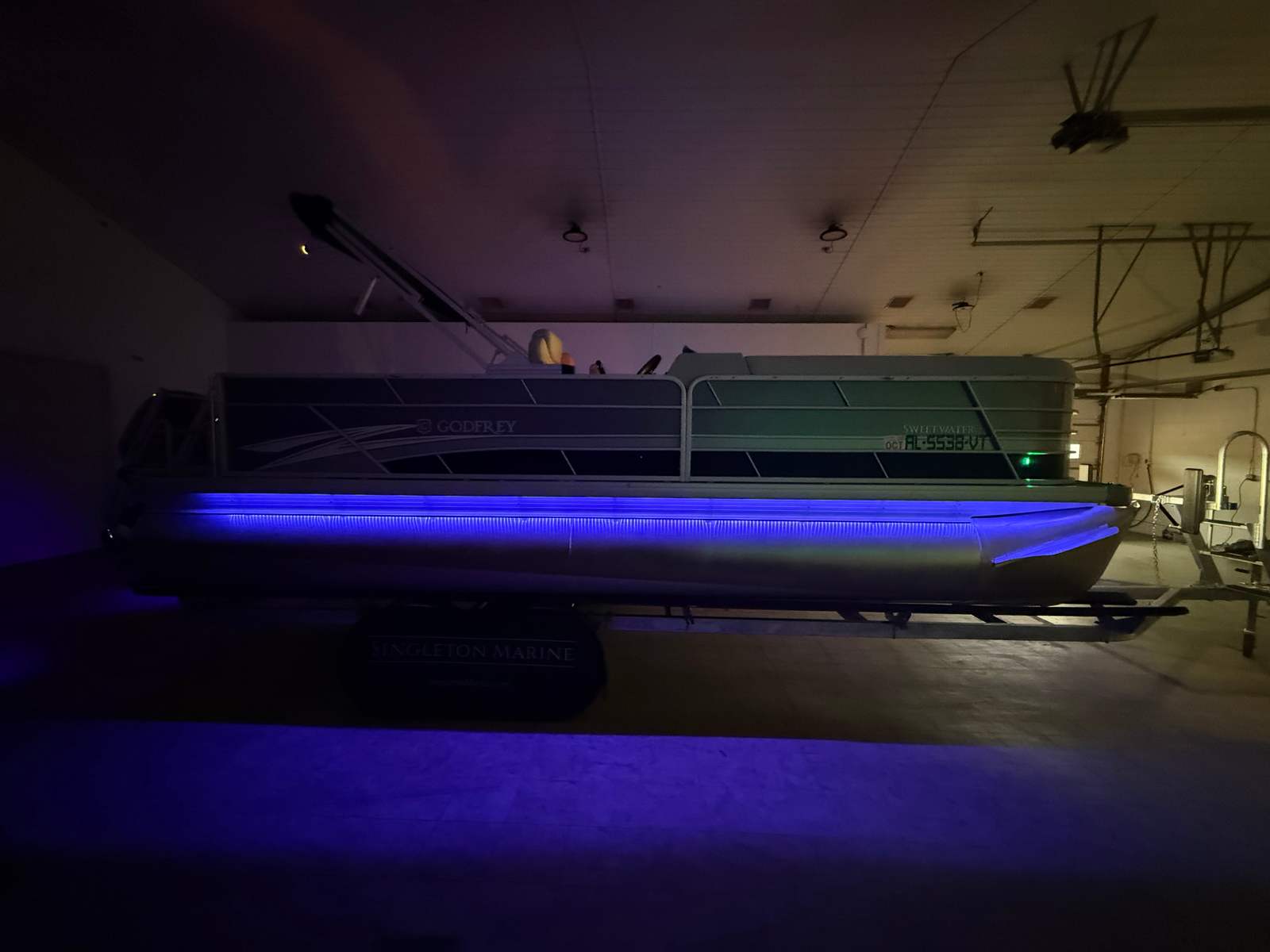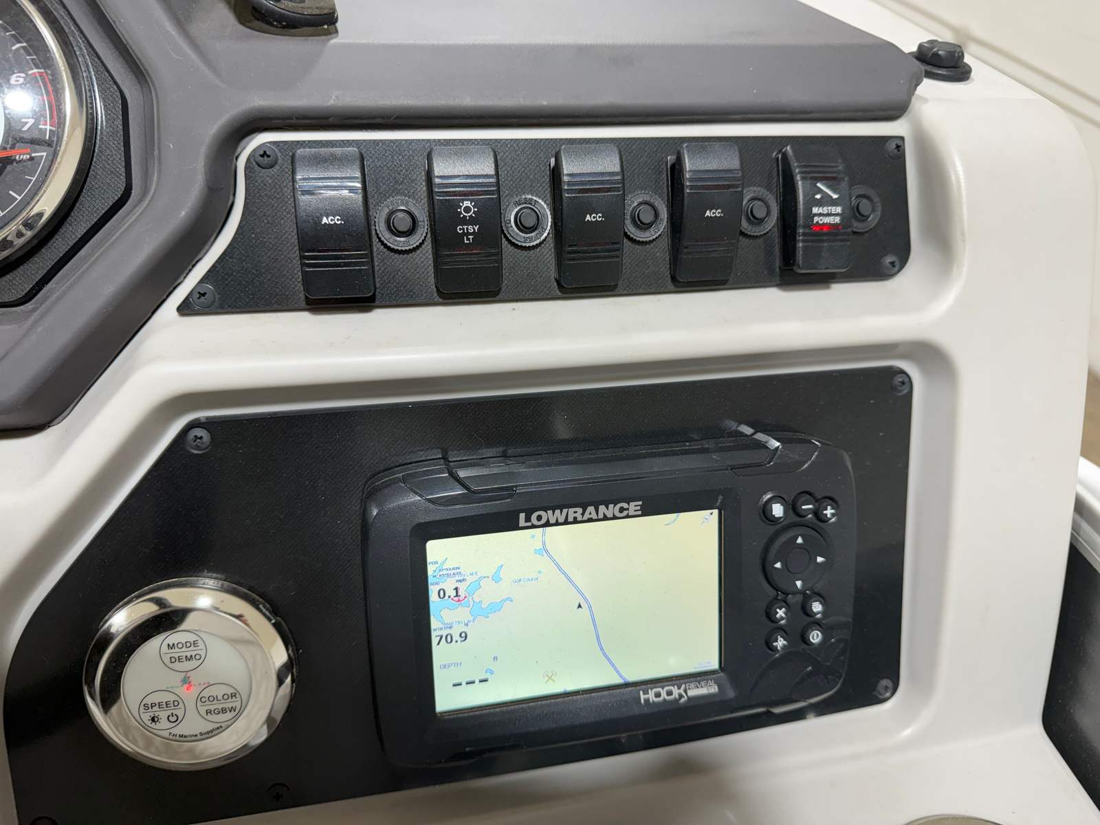 Powered by a single engine delivering an impressive 150 horsepower, the Godfrey SW 2286 offers a smooth and responsive ride. With just 141 engine hours, this pontoon boat for sale has plenty of life left, ensuring reliable performance for seasons to come. The 150 HP engine provides the perfect balance of power and efficiency, allowing you to cruise comfortably, pull water toys, or explore new waterways with confidence. Whether you are navigating calm lakes or venturing into more open waters, the SW 2286’s performance capabilities make every outing enjoyable and stress-free.