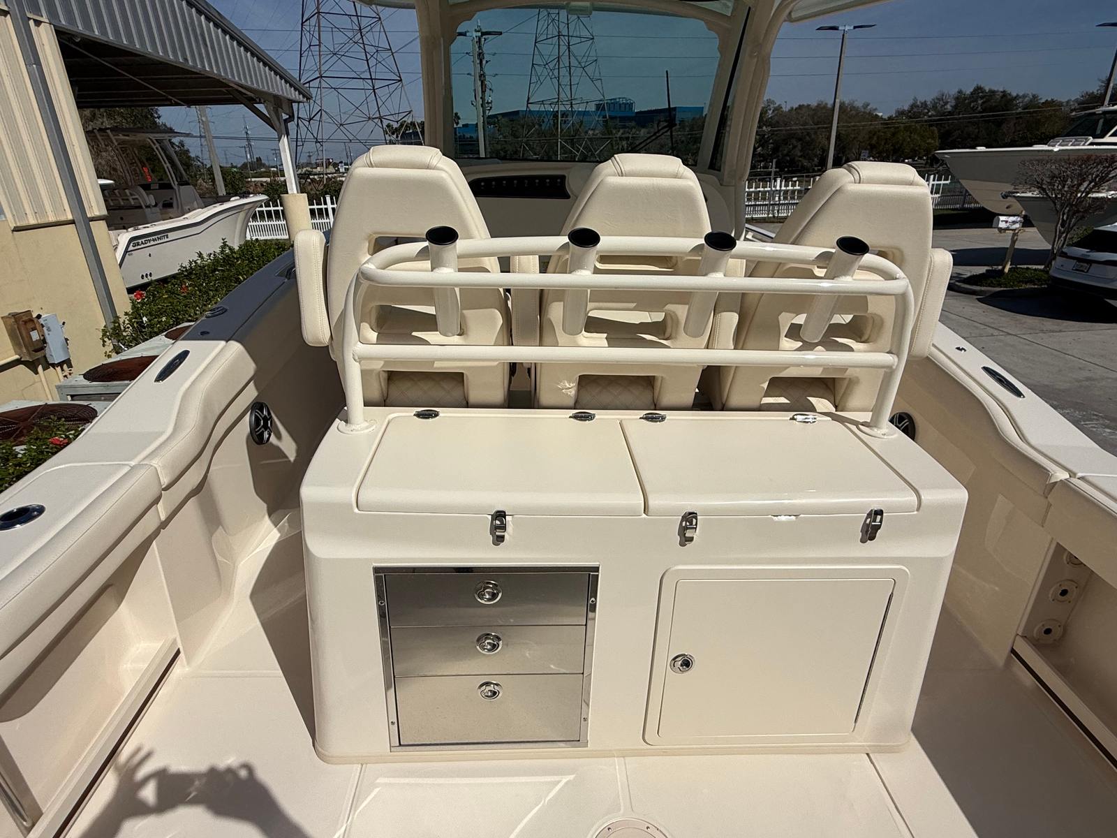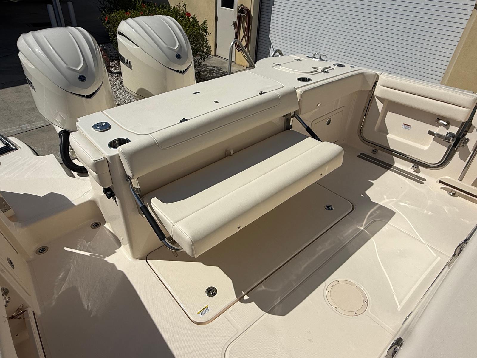 Powering the Canyon 326 are twin Yamaha F350XSB engines, delivering a combined 700 horsepower for exhilarating speed and smooth handling. This dual-engine setup ensures you have the muscle needed for offshore runs, quick getaways, and confident navigation in varying conditions. The prerig Twin Yamaha F350XSB system enhances reliability and ease of operation, making this Grady-White boat for sale a leader in its class for performance and dependability. Whether you’re chasing the horizon or maneuvering through tight channels, the Canyon 326 responds with precision and power.