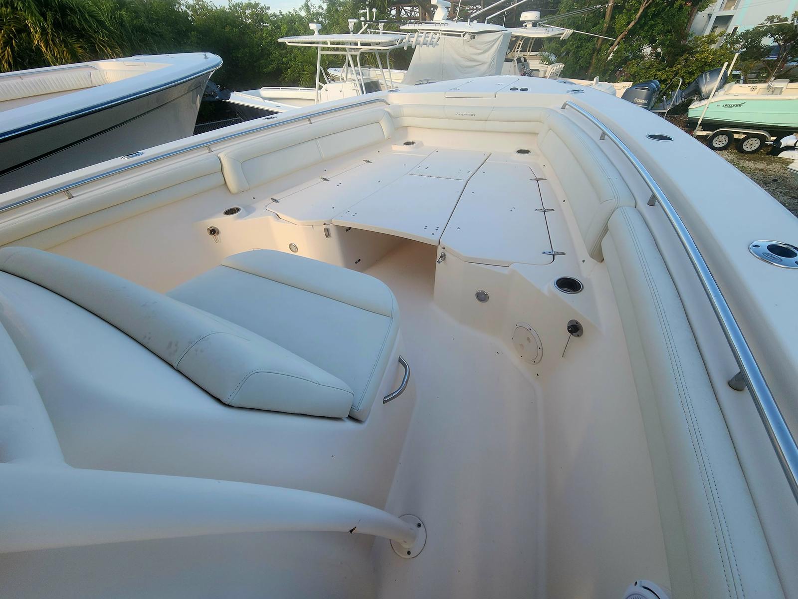 The Grady-White Canyon 336 is packed with features that enhance both functionality and comfort. Its spacious 33.5-foot layout provides ample room for fishing, entertaining, and relaxing. The center console design offers 360-degree access around the boat, making it easy to cast lines, fight fish, or simply enjoy the view. The helm is ergonomically designed for optimal control and visibility, ensuring a confident and enjoyable driving experience.Special features of the Canyon 336 include a well-appointed helm station, generous seating arrangements, and abundant storage options for gear and personal items. The boat’s durable construction and high-quality materials ensure longevity and low maintenance, while the thoughtful layout maximizes both utility and comfort. Whether you are preparing for a day of fishing or a sunset cruise, the Canyon 336 is equipped to handle your every need.