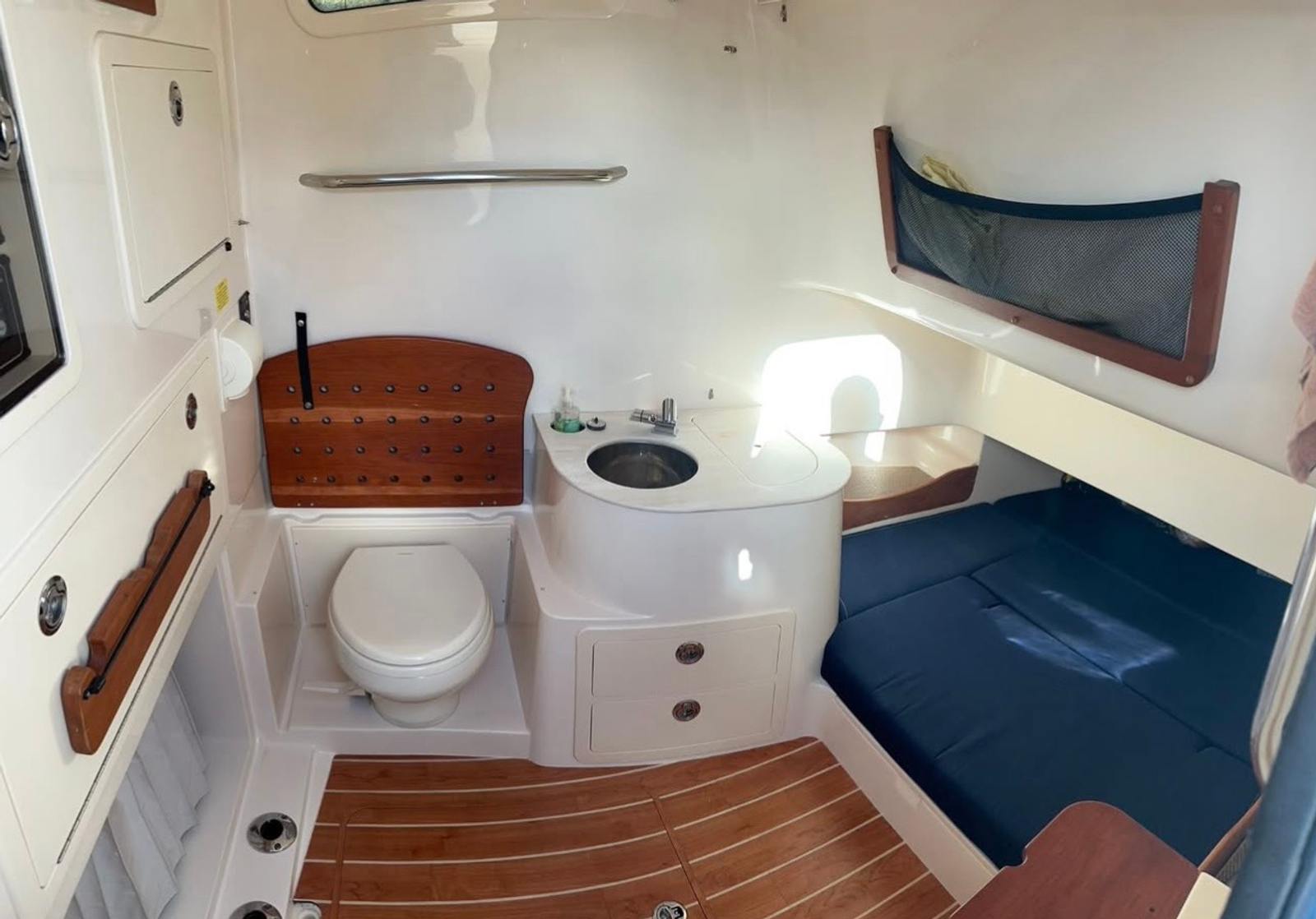 This Grady-White boat for sale is designed with practicality in mind, making ownership both enjoyable and hassle-free. The battery charger keeps your systems running smoothly, while the cockpit storage provides plenty of space for fishing gear, water toys, and personal items. The cockpit coaming bolsters add comfort during active days on the water, and the cabin rod holder keeps your equipment secure and accessible. Docking is made easier thanks to the boat’s responsive handling and well-designed layout, and the depth sounder helps you navigate safely in varying conditions. The enclosed head offers convenience for longer trips, ensuring you and your guests can stay out on the water as long as you like.