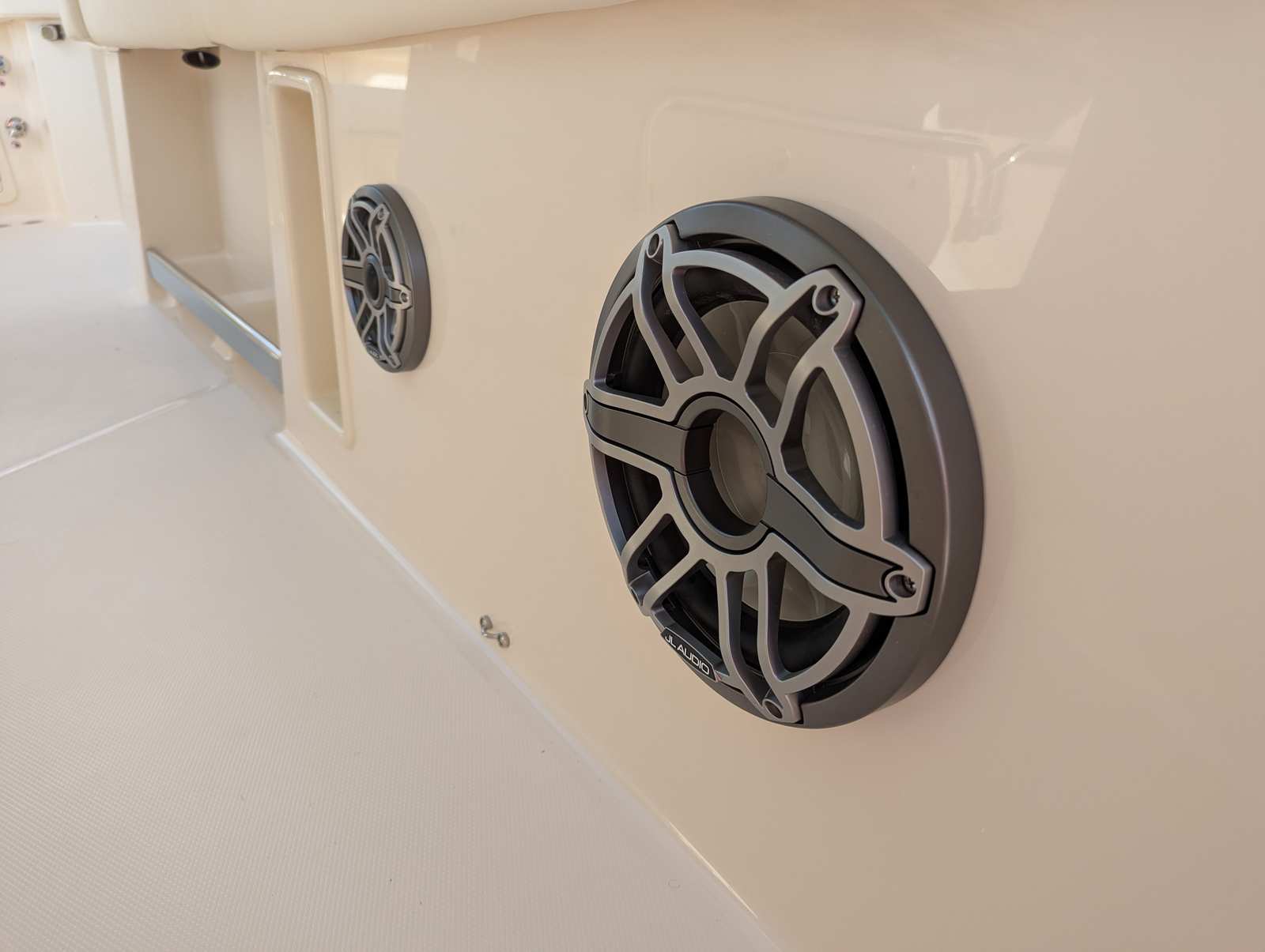 The 2026 Grady-White Canyon 336 is loaded with premium features designed to enhance your boating experience. The cockpit step provides easy access to and from the deck, while the bow table offers a perfect spot for alfresco dining or socializing with friends. For anglers, the casting platform insert with cushion transforms the bow into a versatile fishing or lounging area, and the raw water livewell keeps bait fresh and ready for action.As the sun sets, under water lights create a captivating ambiance, illuminating the water around your boat for evening cruises or night fishing. The whole hull gel color in Celestial Blue not only adds a touch of elegance but also showcases the boat’s modern aesthetic. The Sure Shade Top in Oyster provides ample protection from the sun, while the ivory T-Top wing curtains offer additional shelter from the elements, ensuring comfort in all weather conditions.