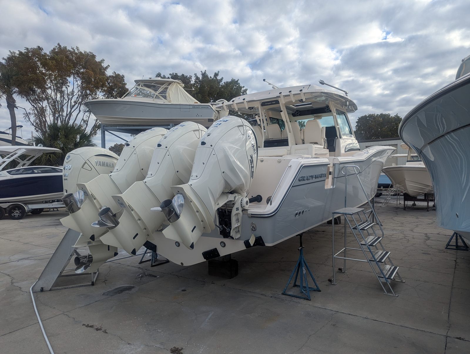 Power and precision are at the heart of the Grady-White Canyon 456. Equipped with four robust Yamaha XF450 engines, this Center Console boat delivers a combined 1800 horsepower, ensuring exhilarating speed and smooth handling in a variety of conditions. The prerig quad Yamaha XF450 setup provides seamless integration and optimal performance, allowing you to navigate offshore waters with confidence and control. Whether you’re chasing trophy fish or cruising along the coastline, the Canyon 456’s advanced propulsion system guarantees a responsive and thrilling ride every time.