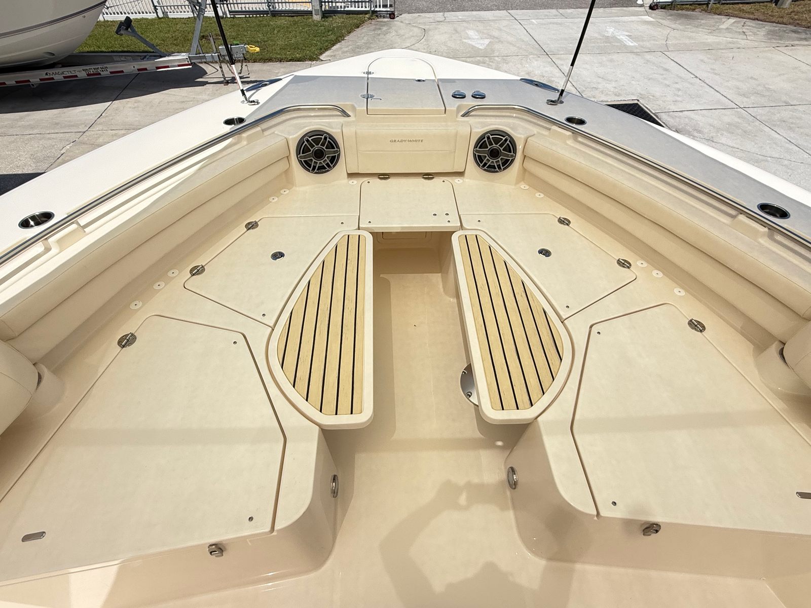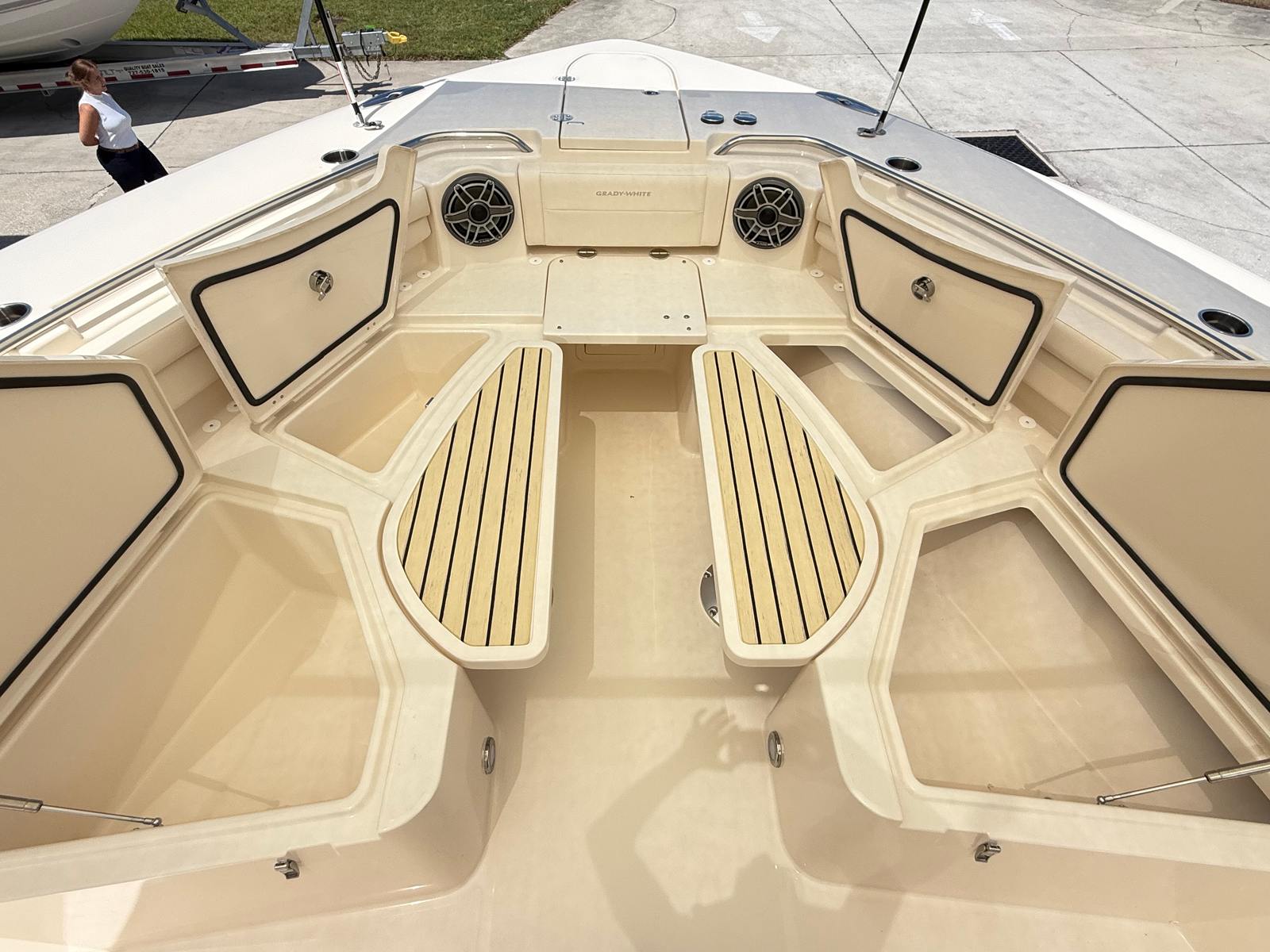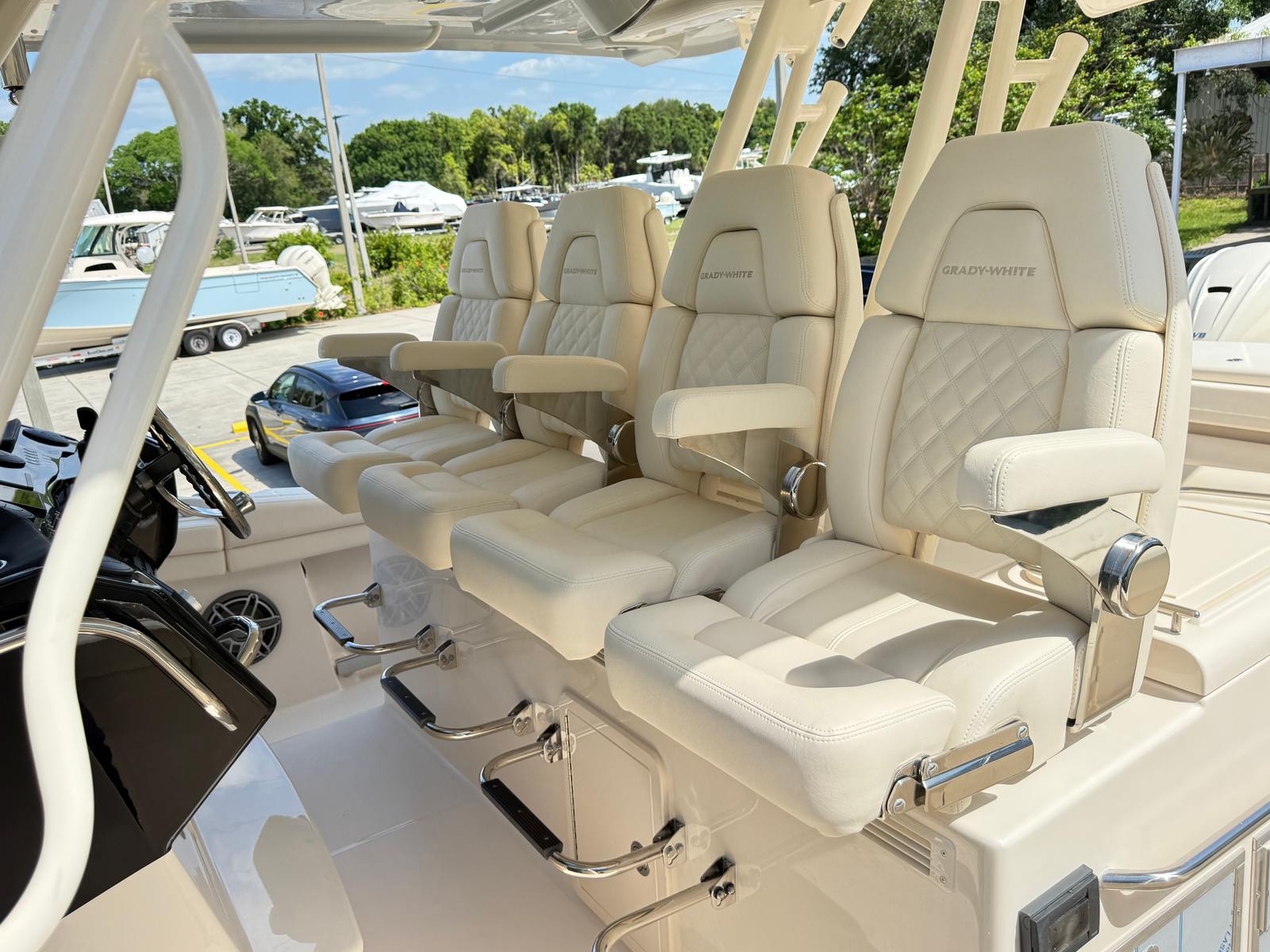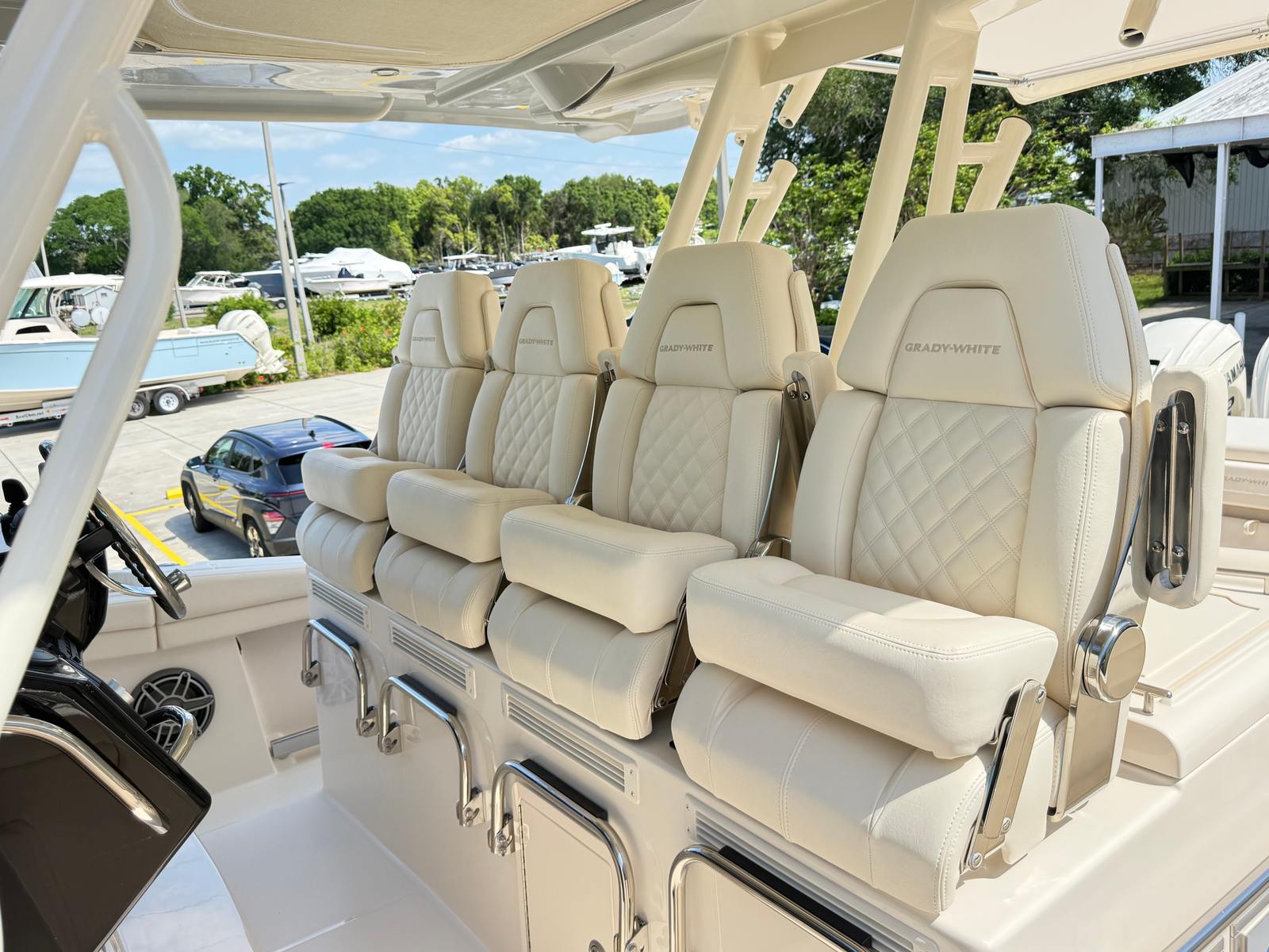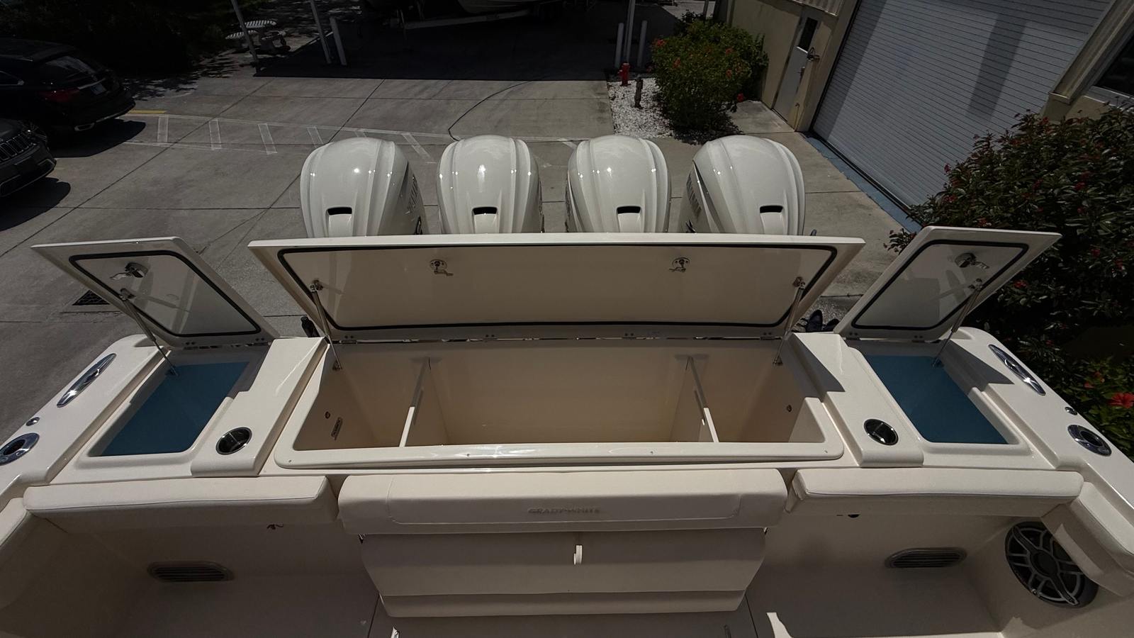 This Grady-White boat for sale is loaded with features that enhance both functionality and enjoyment on the water. The quad Yamaha XF450 engines are a testament to the boat’s commitment to power and reliability, while the Yamaha Prerig ensures that every system operates at peak efficiency. The Gel Coat in Coastal Fog Blue not only adds visual appeal but also provides a durable, easy-to-maintain finish. Outriggers are included for serious anglers who want to maximize their fishing spread and target a variety of species. The Jit Top Underside in Coastal Fog complements the overall aesthetic, creating a cohesive and stylish look that is sure to turn heads.