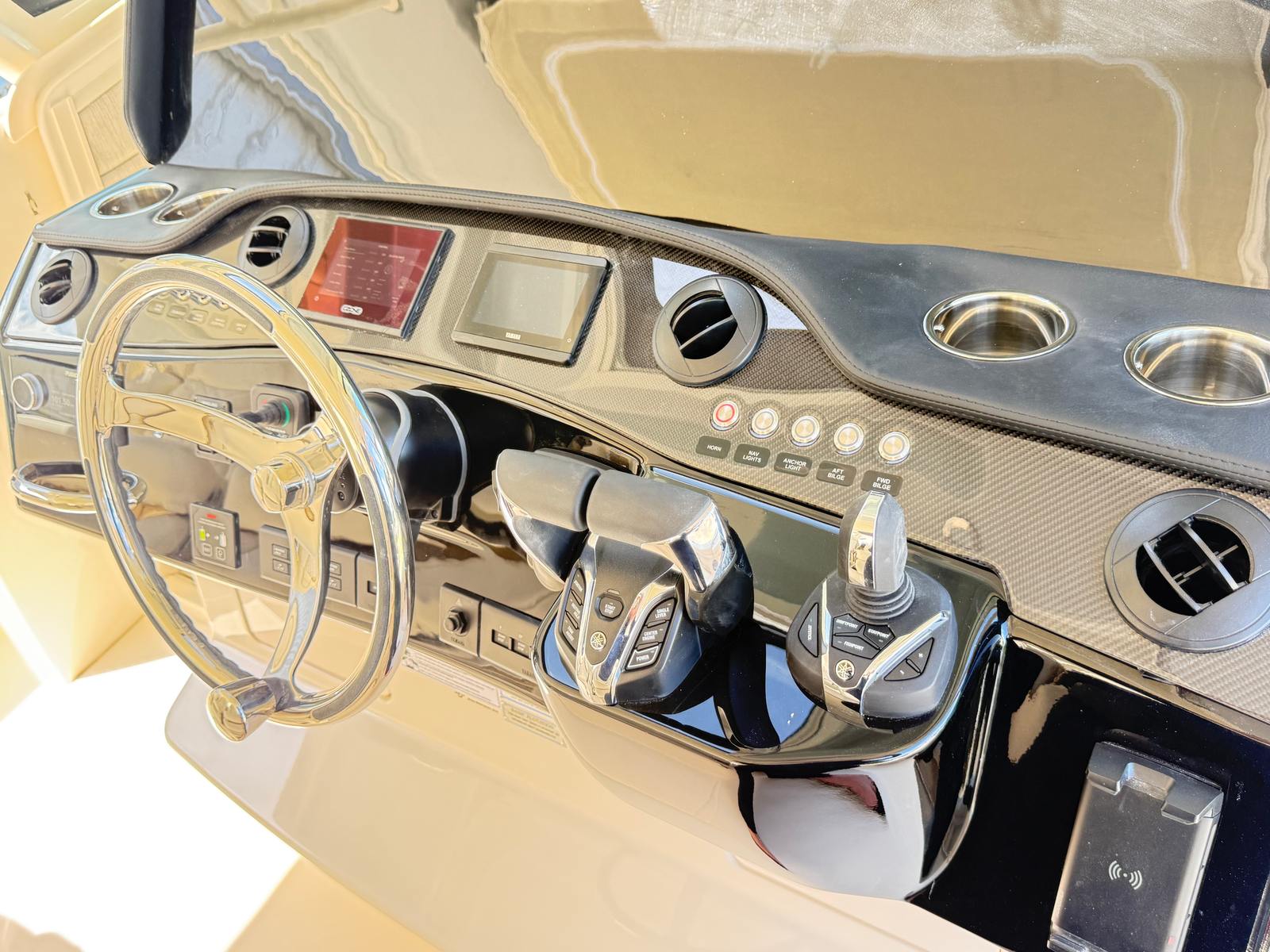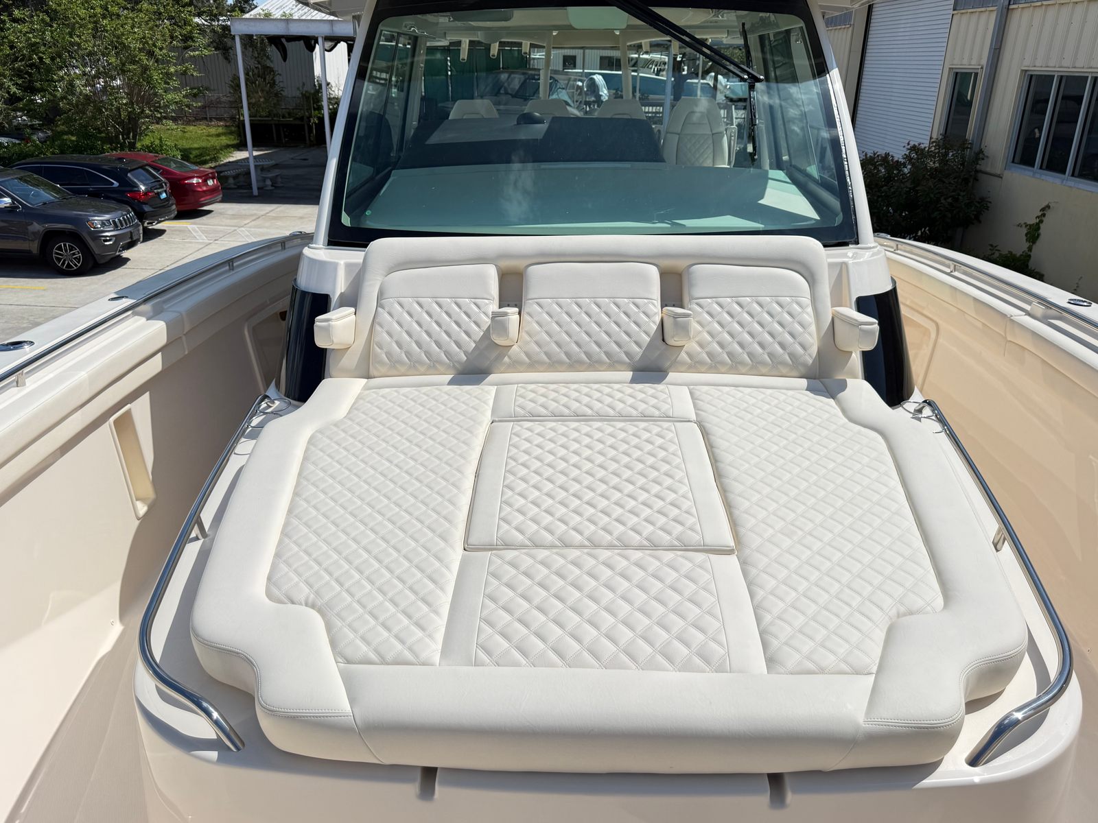 The Grady-White Canyon 456 is as practical as it is impressive. Its generous length and thoughtful design provide ample storage for gear, tackle, and personal items, keeping the deck clutter-free and organized. The center console layout makes docking and maneuvering straightforward, even in tight spaces, while the powerful quad engines offer responsive handling and quick acceleration. Fuel efficiency is enhanced by the advanced Yamaha outboards, allowing you to spend more time on the water and less time at the fuel dock. Whether you are planning a long-range fishing trip or a weekend getaway, this center console boat for sale is equipped to handle it all with ease.