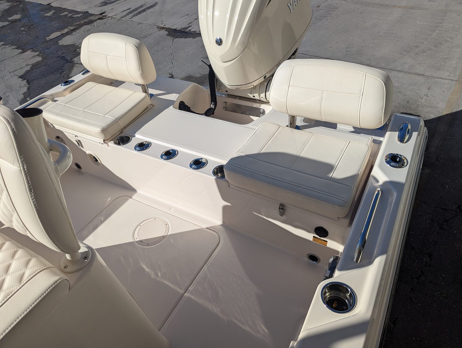 Powering the Coastal Explorer 231 is a robust single Yamaha F250NSB4 engine, delivering an exhilarating 250 horsepower. This engine is renowned for its smooth operation, fuel efficiency, and impressive acceleration, providing the perfect balance of power and control. The prerig for the single Yamaha F250 ensures seamless integration and optimal performance, allowing you to navigate coastal waters, inlets, and open bays with confidence. Whether you are chasing the next big catch or enjoying a leisurely cruise, the Coastal Explorer 231’s performance capabilities make every outing memorable.