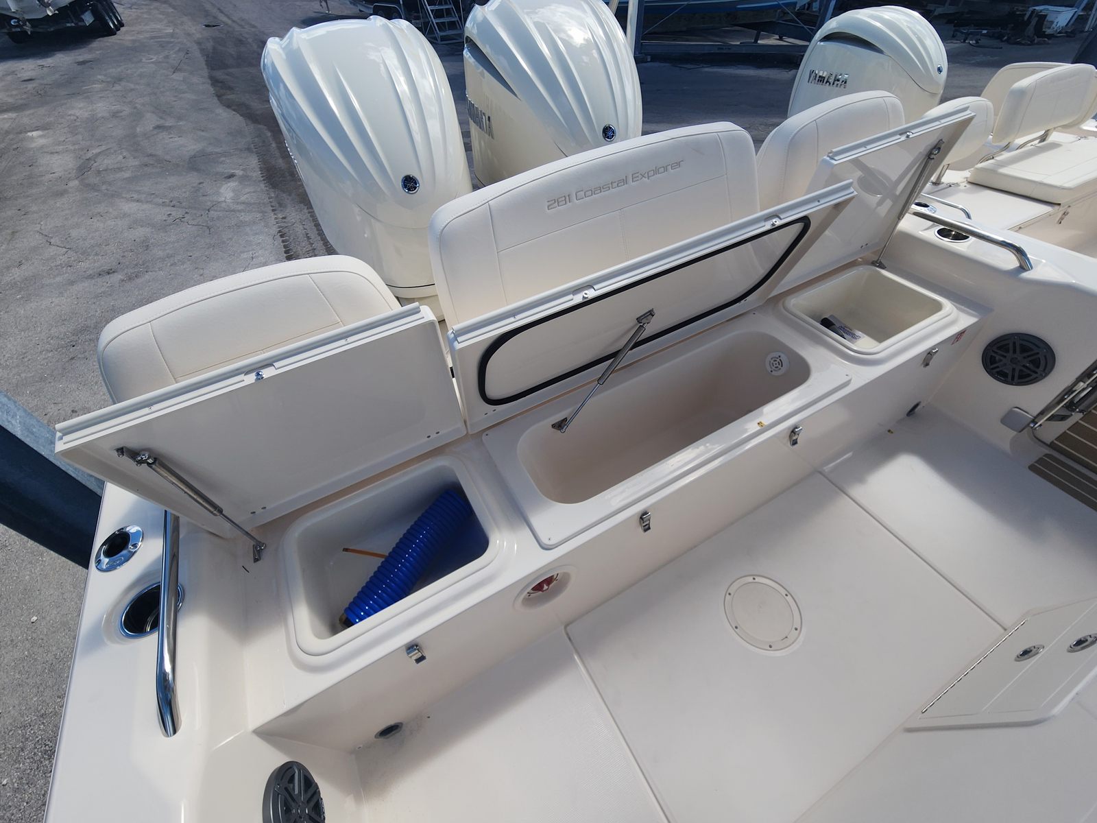 Power and reliability are at the heart of the Coastal Explorer 281. Equipped with dual F300XSA engines, this Center Console boat boasts a combined 600 horsepower, providing impressive speed and agility. The twin engines ensure smooth handling and responsive acceleration, making it easy to navigate through various water conditions. Whether you’re cruising along the coastline or heading out for offshore adventures, the Coastal Explorer 281 delivers the power and performance you need for an exhilarating ride. The advanced engine setup also enhances fuel efficiency, allowing you to enjoy longer journeys with fewer stops.