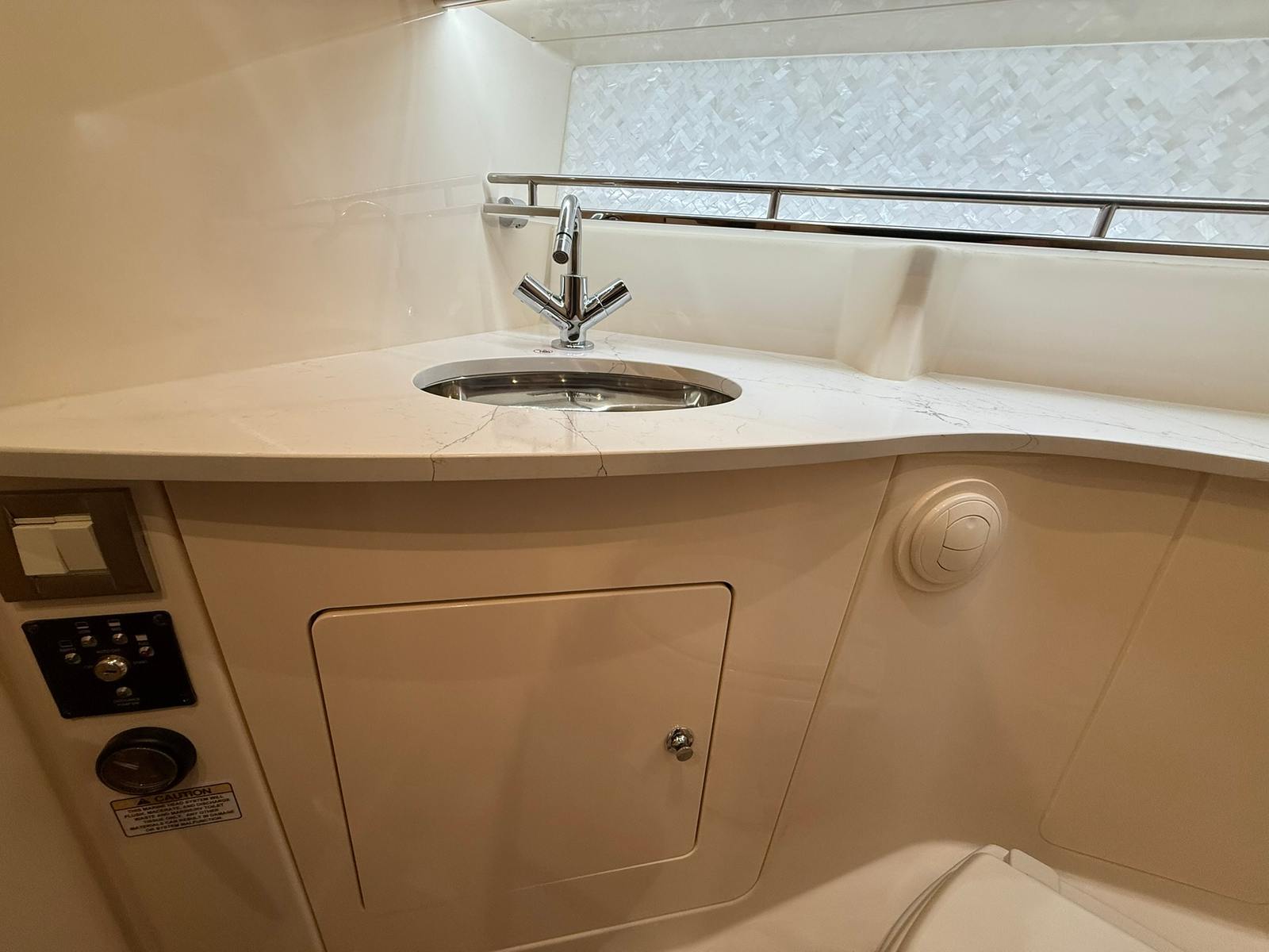 The Grady-White Express 340 is as practical as it is luxurious. Its 33.5-foot length strikes the perfect balance between spaciousness and maneuverability, making docking and storage straightforward and stress-free. The efficient triple Yamaha F350XSB engines are engineered for reliability and ease of maintenance, ensuring that you spend more time enjoying the water and less time worrying about upkeep. The Seakeeper 3 HD stabilization system not only enhances comfort but also contributes to safety, providing a stable platform for all your activities. The cockpit refrigerator is ideal for storing drinks and snacks, making it easy to entertain guests or keep your family fueled for a day of fun. The custom Loose Style Line Tape and Ocean Mist Blue gel coat ensure your boat stands out, while also protecting its exterior for years to come.