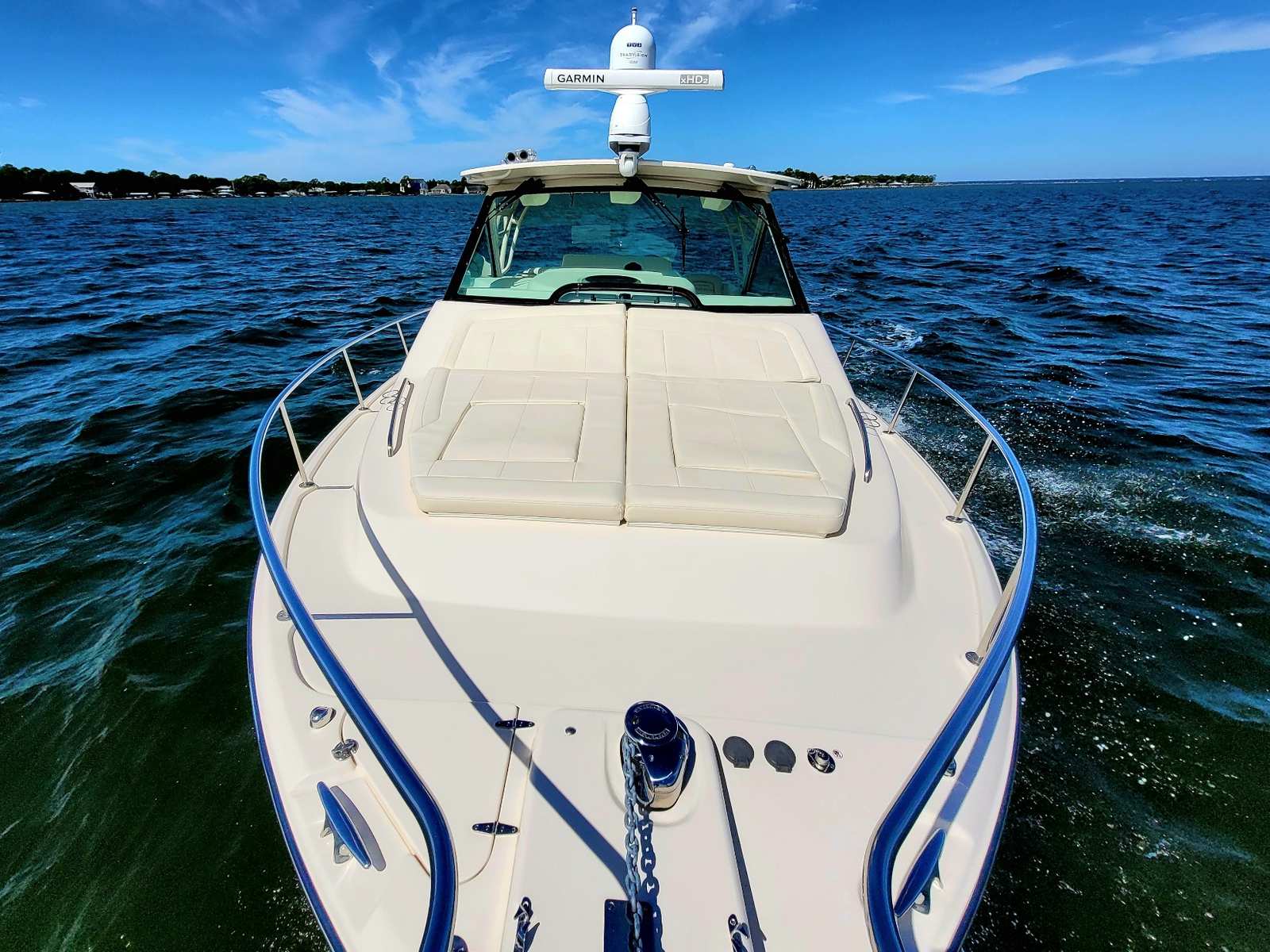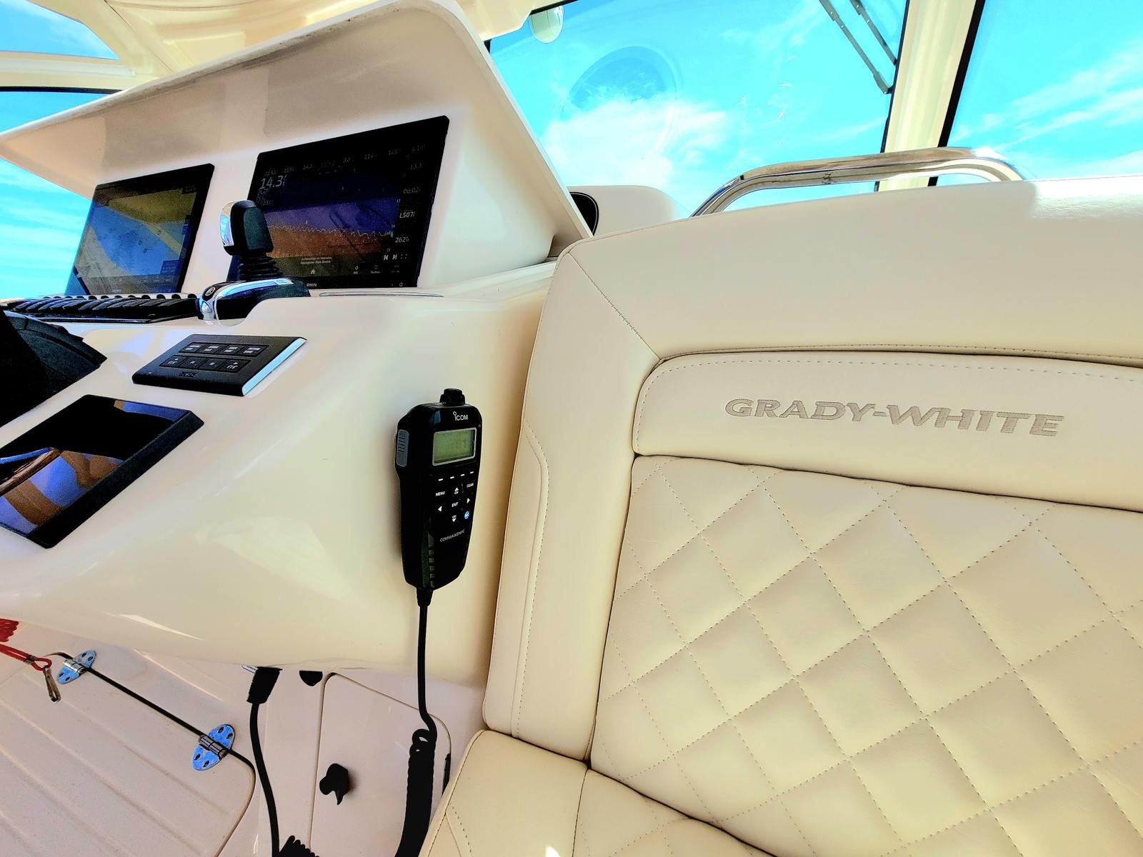 This is a superb example of the classic Grady White 370 Express. This example has been meticulously cared for by its one owner and shows extremely well. Finished in beautiful Ocean Mist Blue and powered by the reliable triple Yamaha F425XTO with Yamaha Warranty thru 10.06.27. Equipped with Helm master joystick with Stay Point and Fish point position hold makes docking and fishing effortless!