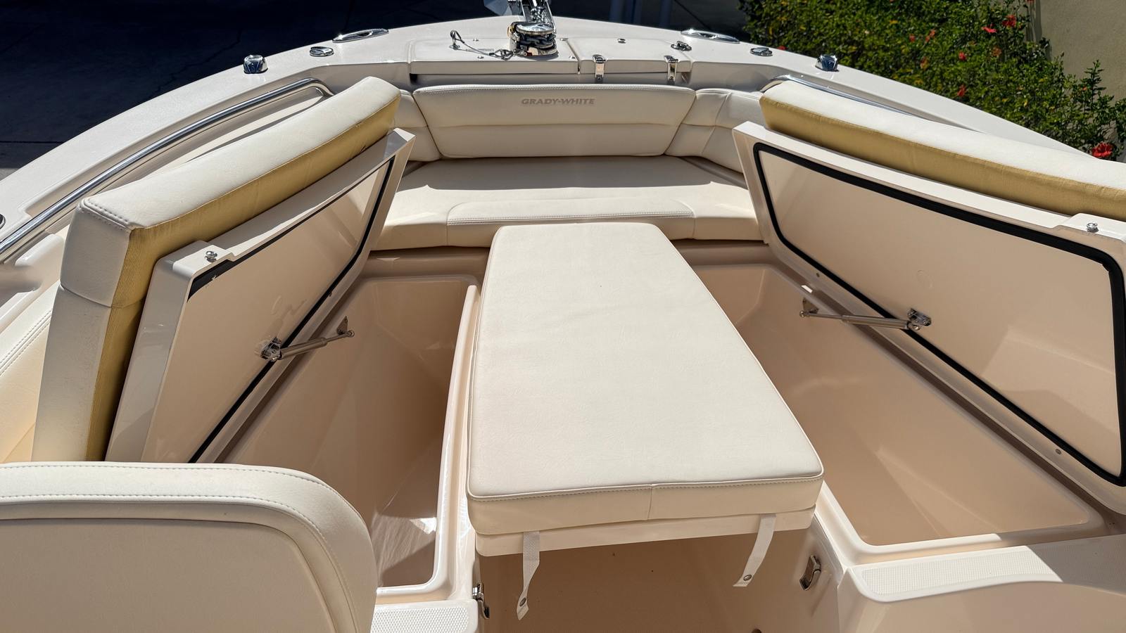 This Center Console boat truly shines in a variety of scenarios. For families, the spacious deck and comfortable seating make it perfect for day trips, picnics, and swimming excursions. Anglers will appreciate the casting platform insert with cushion, providing a stable and versatile area for fishing. The powerful Yamaha F350 engine ensures you can reach your favorite fishing spots quickly and efficiently.For those seeking luxury getaways, the Fisherman 236 offers a stylish and inviting space to relax and unwind. The ivory bow shade creates a cool retreat from the sun, while the elegant silver logos/nameplate add a touch of sophistication. Whether you’re exploring coastal waters, entertaining guests, or enjoying a quiet afternoon on the lake, this Grady-White boat for sale delivers exceptional performance and comfort.