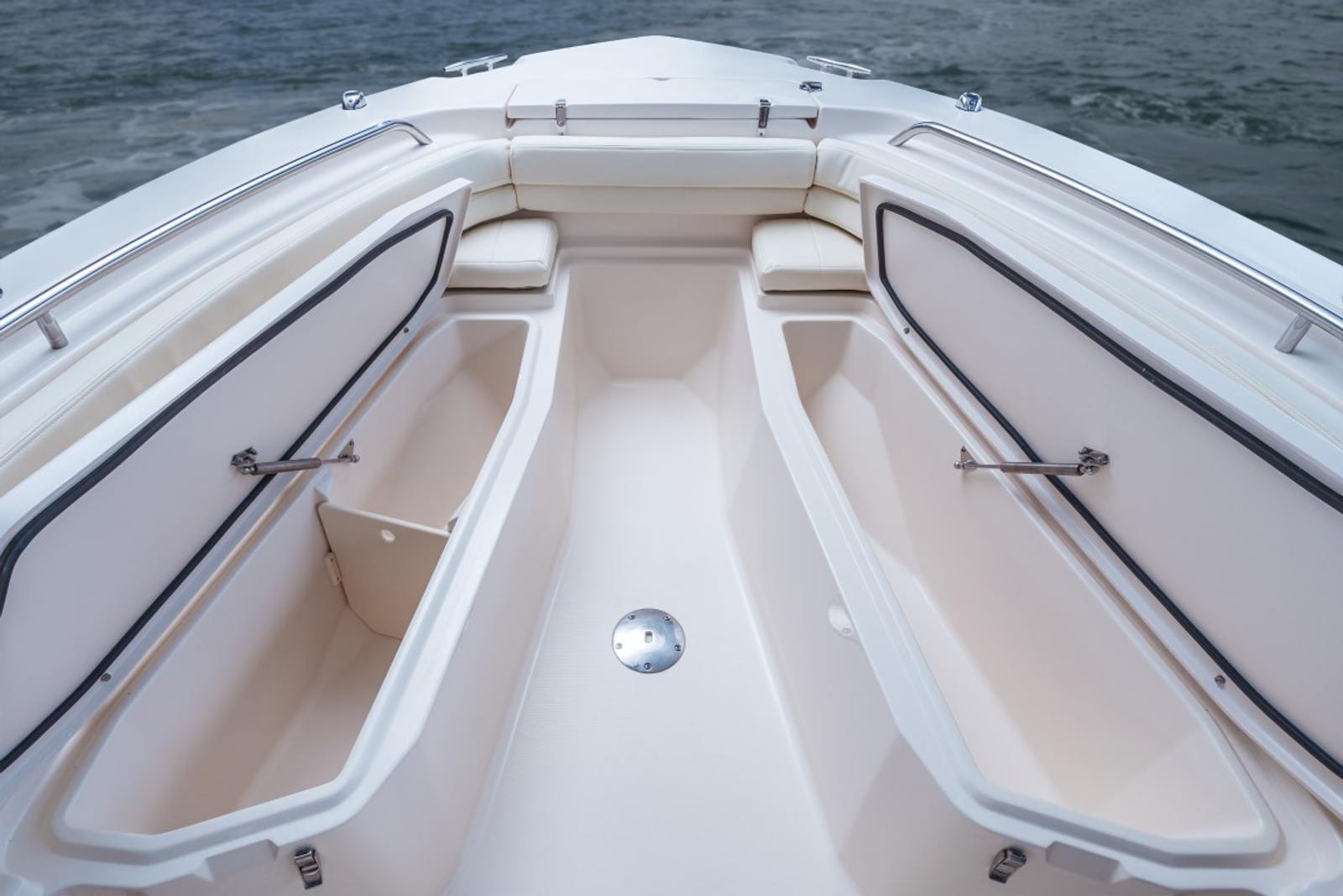 The Grady-White 257 Fisherman is designed with practicality in mind, making ownership easy and enjoyable. The Center Console configuration provides excellent visibility and control, simplifying docking and maneuvering in tight spaces. The cockpit step on the port side adds convenience when boarding from the dock or the water, while the Yeti cooler under the lean bar ensures that drinks and snacks are always within reach. Storage is thoughtfully integrated throughout the boat, allowing you to keep your fishing gear, safety equipment, and personal items organized and secure. The robust construction and quality materials used in the whole hull gel ensure long-lasting durability and low maintenance, so you can spend more time enjoying the water and less time worrying about upkeep.