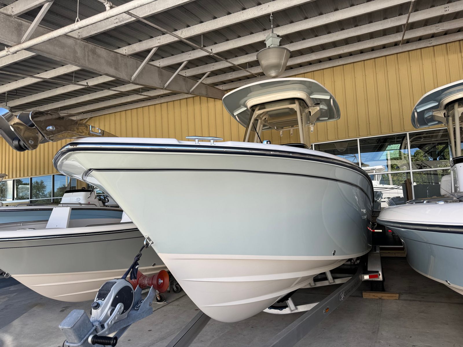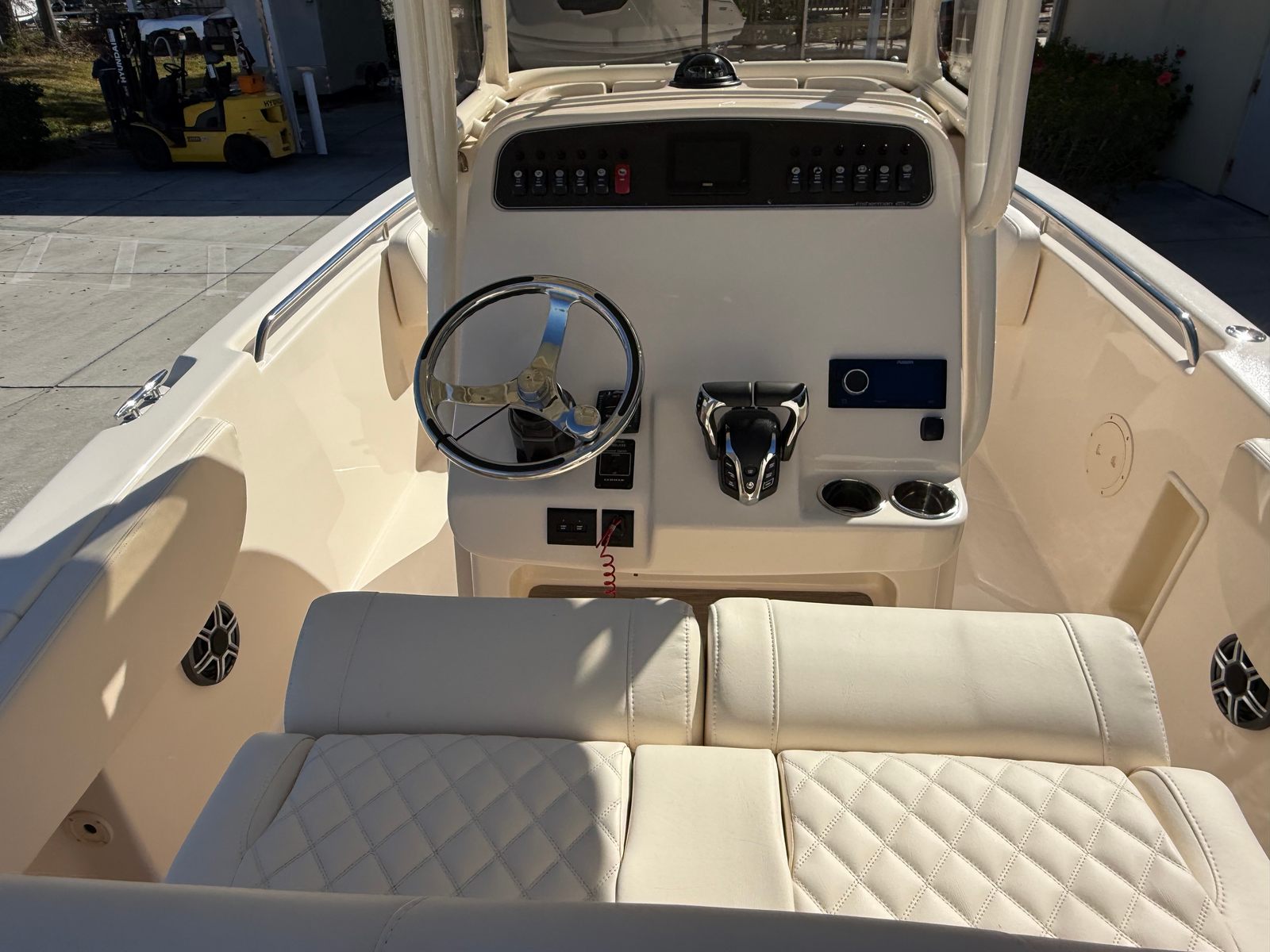 This center console boat for sale is as practical as it is stylish. The Fisherman 257’s manageable length of 24.75 feet makes it easy to dock, trailer, and store, giving you flexibility and convenience. The efficient Yamaha F200 engines are designed for optimal fuel economy, helping you spend more time on the water and less at the pump. The head macerator adds a level of comfort that is especially appreciated during longer trips, while the durable gel coat ensures your boat maintains its stunning appearance season after season. Whether you are navigating tight marinas or exploring open waters, the Fisherman 257 offers the versatility and ease of use that today’s boaters demand.