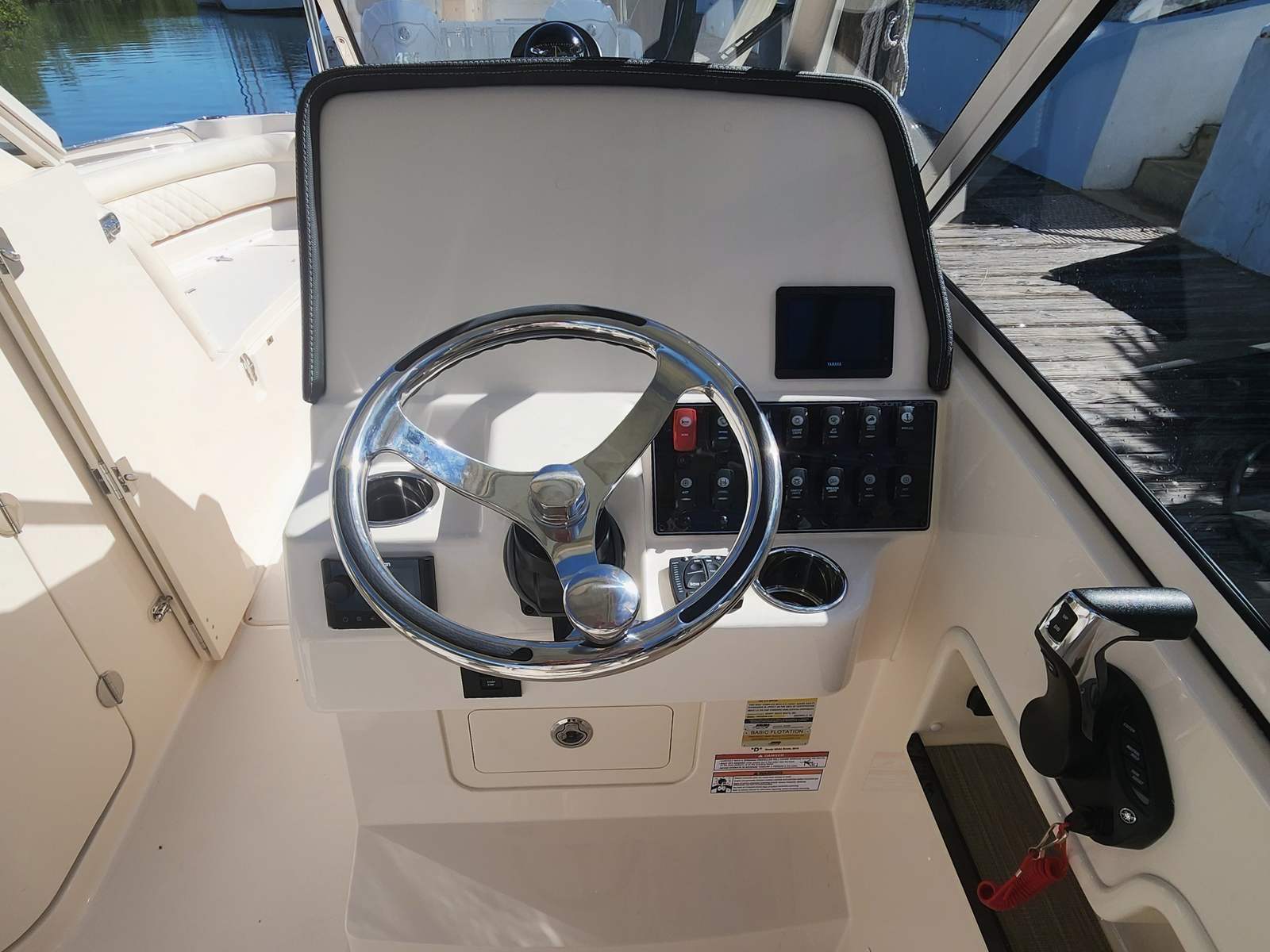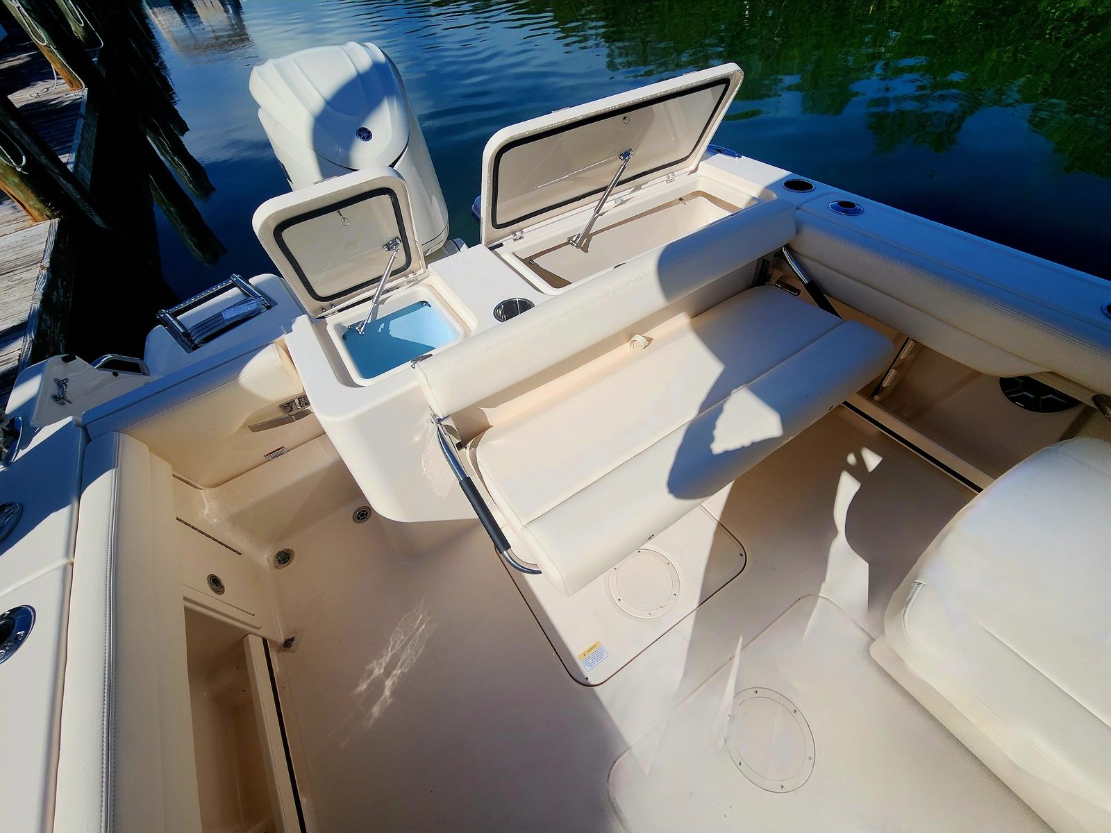 Power and reliability are at the heart of the Grady-White Freedom 235. Equipped with a single Yamaha F350 IDES engine, this boat delivers a robust 350 horsepower, ensuring exhilarating acceleration and smooth cruising. The Yamaha F350 is renowned for its advanced engineering, fuel efficiency, and quiet operation, allowing you to enjoy long days on the water with confidence and peace of mind. Whether you are navigating coastal waters, exploring hidden coves, or heading offshore for a day of fishing, the Freedom 235’s performance capabilities will exceed your expectations.