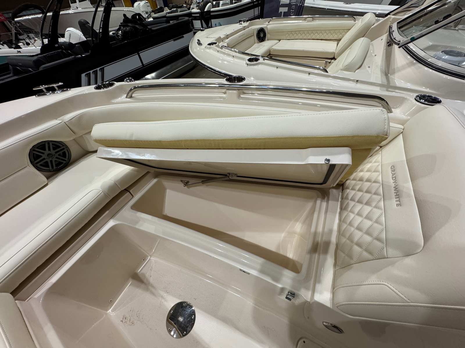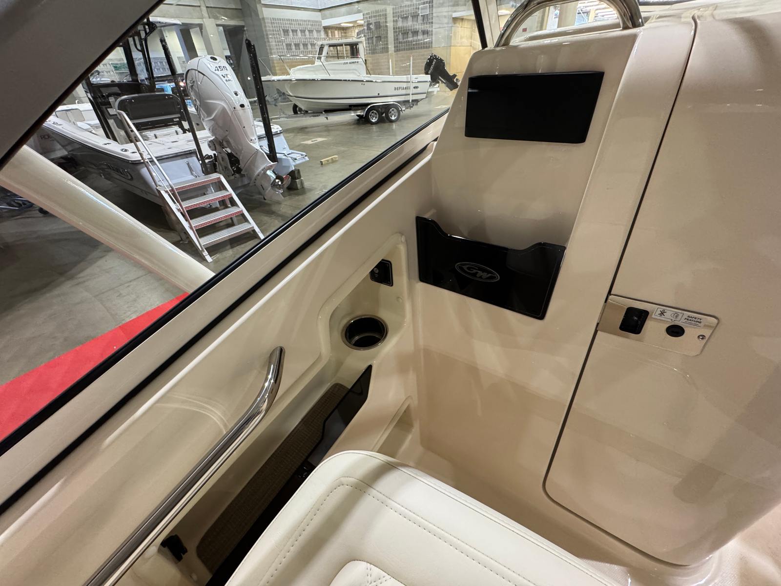Painted Rod Holders: Enhances functionality and complements the boat’s elegant finish.