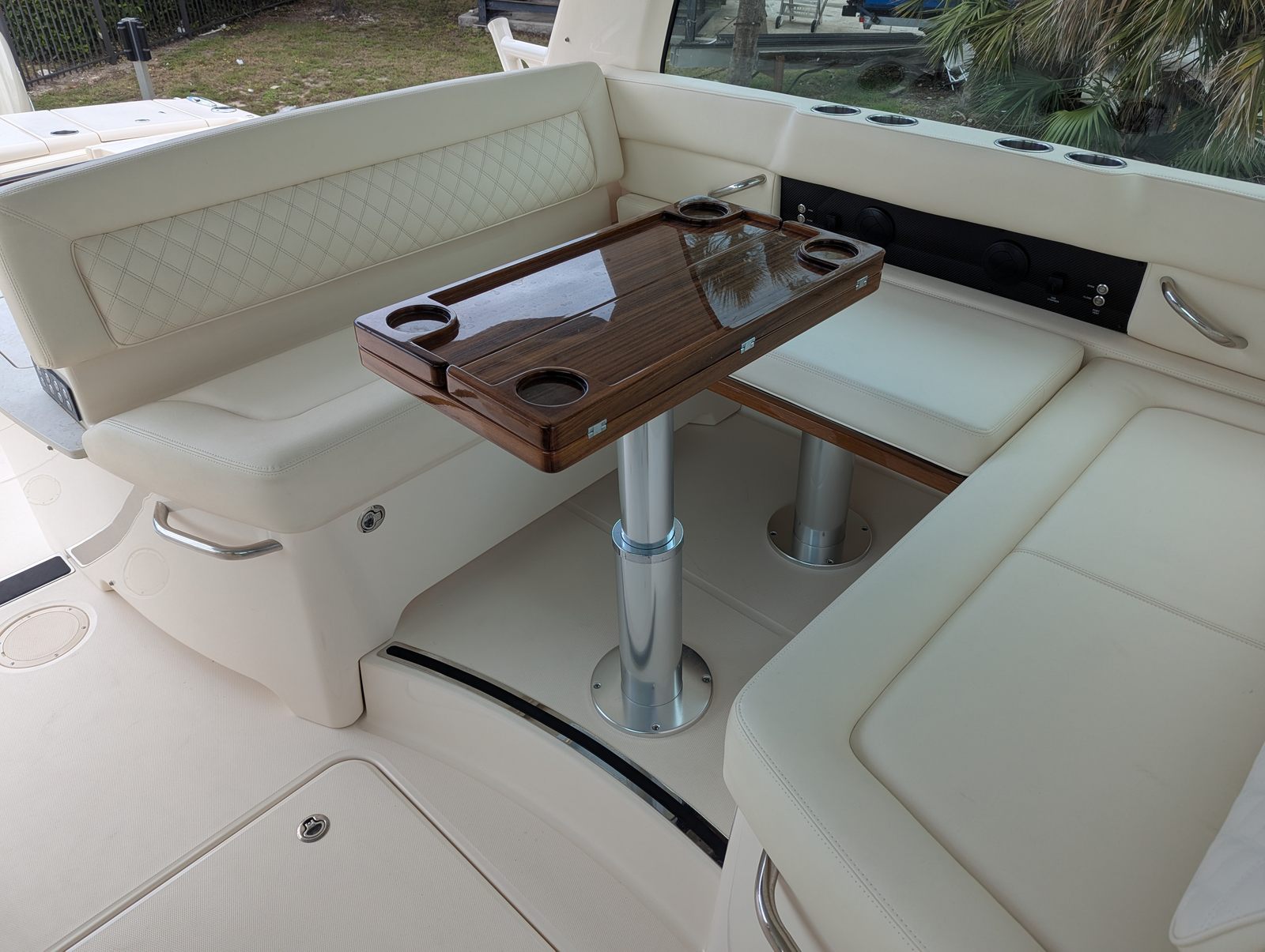 The largest outboard powered dual console ever built, the new Freedom 415, delivers the ultimate in freedom with its perfect blend of rugged fishability and meticulously appointed luxury. Drawing from the highly acclaimed Canyon 456, the 415’s spacious cockpit includes all the coveted fishing features you’d find in a large sportfishing yacht with an added emphasis on comfort. Plush convertible companion and bow seating, tables that electronically raise and lower, and handcrafted custom cabinets with cane inlay are only a few of the details that elevate this boat to a luxury cruiser. A true seaworthy sportfishing yacht, the 415 hits the mark with an unmatched versatility that makes it the boat for both serious offshore anglers and the couple or family that enjoys cruising.