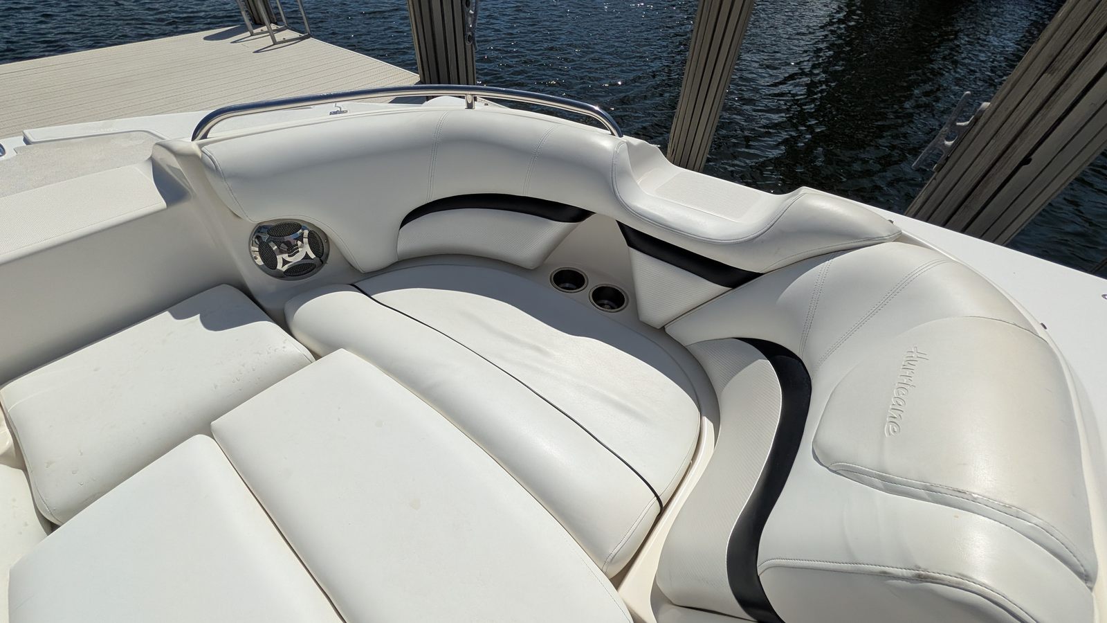 The Hurricane 2000 SD is as practical as it is fun. The efficient single-engine design helps keep fuel costs down, so you can spend more time on the water without breaking the bank. The manageable 20.25-foot length makes docking and trailering a breeze, even for those new to boating. Storage compartments throughout the deckboat provide plenty of space for gear, snacks, and water toys, keeping the deck clutter-free and organized.Whether you’re heading out for a quick afternoon escape or planning a full day of adventure, this Hurricane boat for sale is ready to accommodate your needs. The durable construction and thoughtful layout ensure that every trip is comfortable, convenient, and carefree.