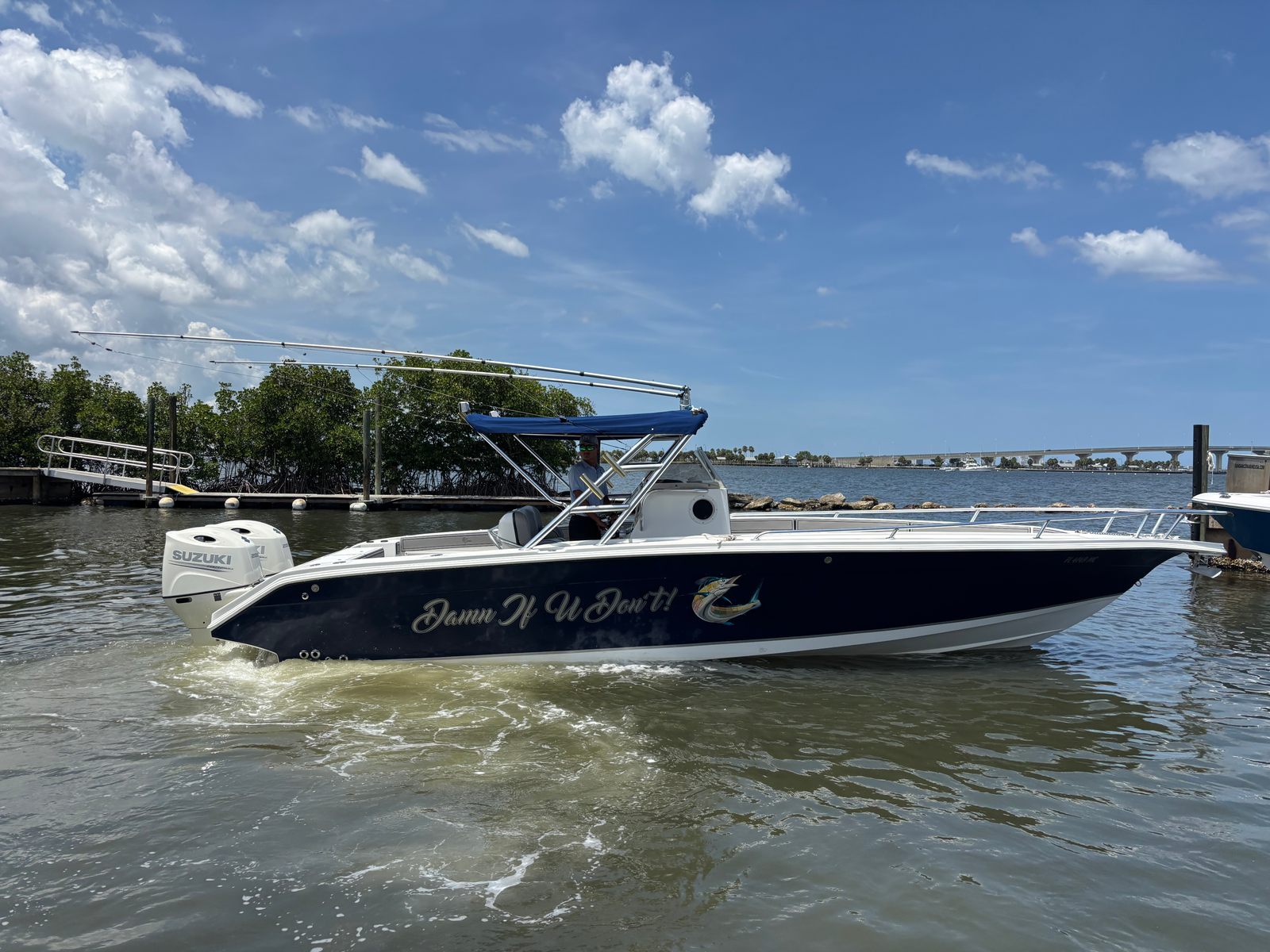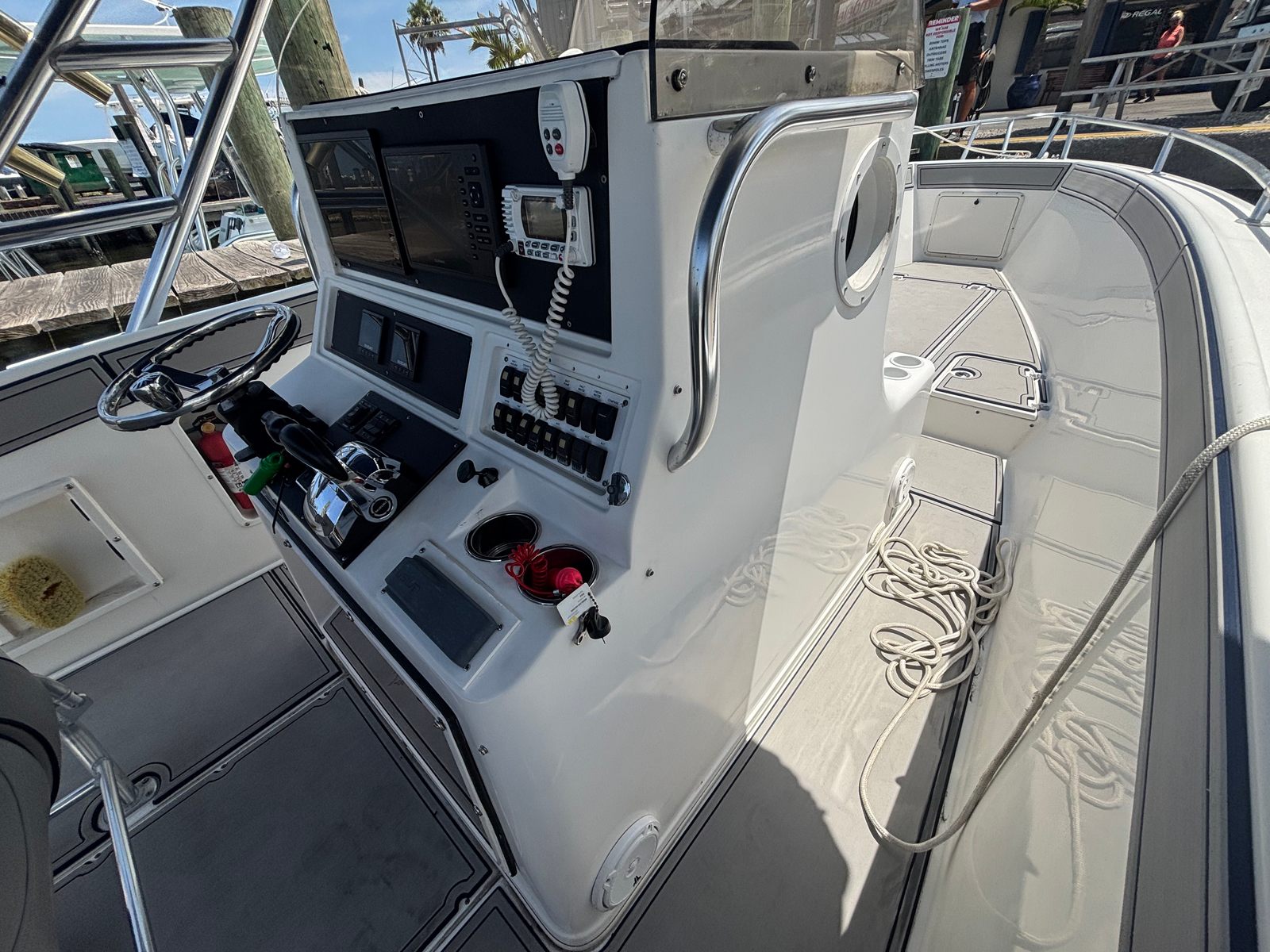 The Jefferson Marlago FS31 is as practical as it is enjoyable. The center console layout makes docking and maneuvering a breeze, even for those new to boating. The 31-foot length strikes an ideal balance, offering enough space for comfort without making storage or trailering a challenge.Fuel efficiency is enhanced by the twin-engine configuration, allowing you to cover more water without frequent stops at the fuel dock. The generous storage compartments keep your gear organized and out of the way, so you can focus on the fun rather than clutter.Maintenance is straightforward, thanks to the accessible engine setup and durable construction. With only 150 engine hours, this used Jefferson boat for sale is ready for many more seasons of reliable service.
