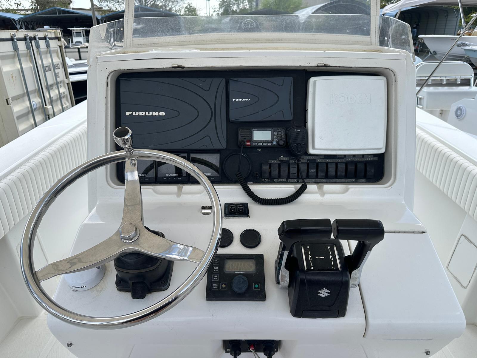 The 2003 Jupiter 31 HFS is designed with both functionality and comfort in mind. Its center console layout maximizes deck space, allowing for easy movement around the boat—an essential feature for anglers and families alike. The helm is thoughtfully arranged for intuitive control, while the open cockpit provides ample room for fishing, lounging, or entertaining guests. The robust construction and attention to detail are evident throughout, reflecting Jupiter’s commitment to quality and safety.Special features of this Jupiter boat for sale include its twin-engine configuration, which not only boosts performance but also adds a layer of redundancy for peace of mind on longer journeys. The 31-foot length strikes the perfect balance between spaciousness and manageability, making it suitable for a wide range of activities and water conditions. As a used center console boat, it offers the advantage of proven durability, with a reputation for holding its value and delivering years of dependable service.