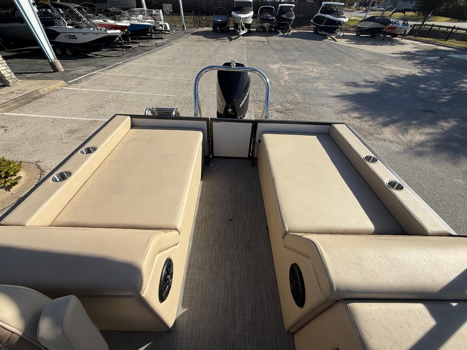 Practicality is at the heart of the Massimo P24 Limited’s appeal. The generous storage options allow you to keep your gear organized and accessible, while the spacious deck makes it easy to move around and enjoy different activities. Docking is a breeze thanks to the pontoon’s maneuverable design, and the efficient engine helps you make the most of your time on the water without worrying about excessive fuel consumption.The P24 Limited is also designed with maintenance in mind, featuring durable materials and thoughtful engineering that simplify upkeep. As a used boat, it offers the added benefit of proven reliability, giving you confidence in your investment. Whether you’re a seasoned boater or new to the world of pontoons, this model’s practical features make ownership straightforward and enjoyable.