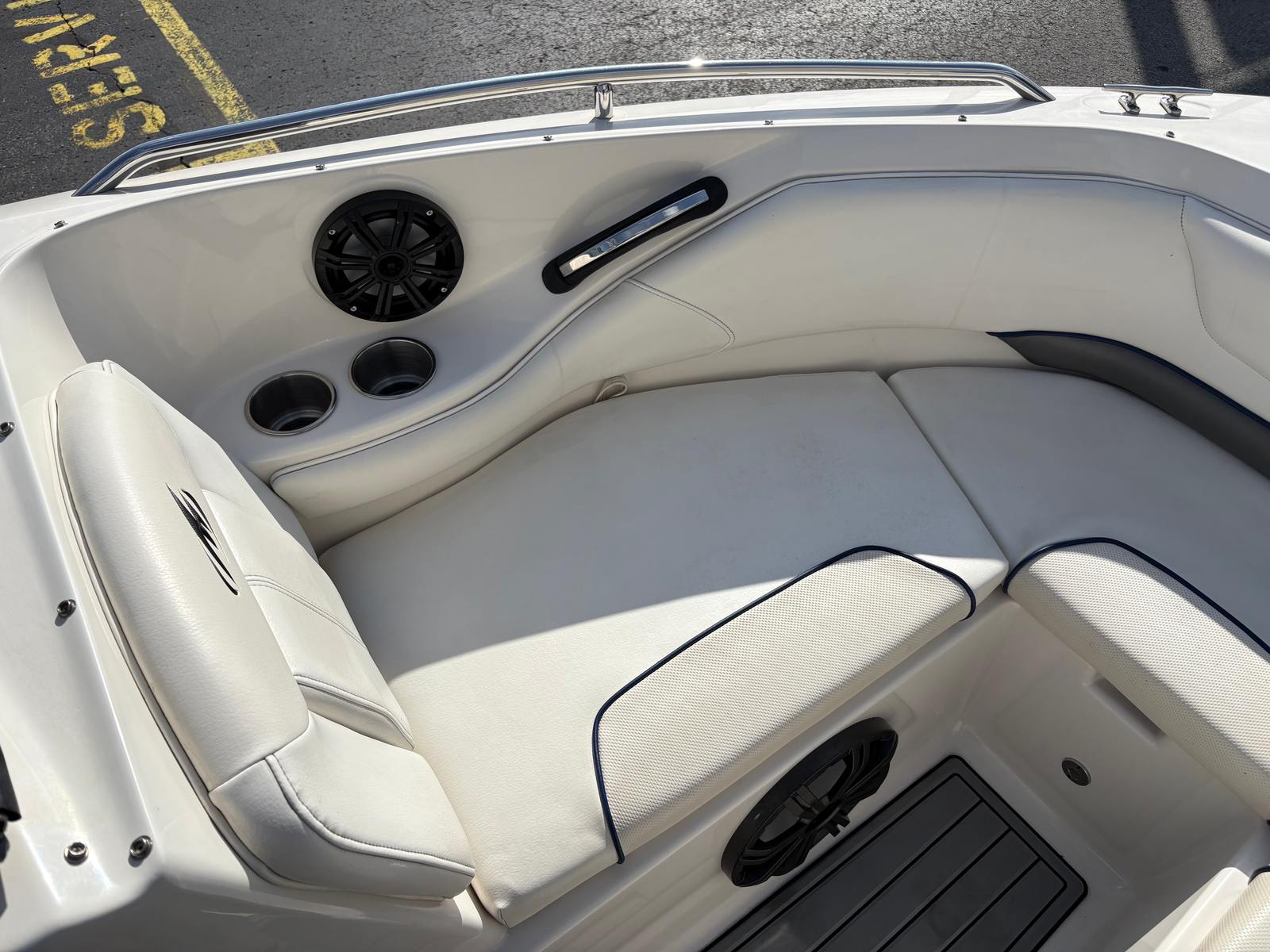 Beyond its recreational appeal, the Monterey 224 FS Bowrider is designed with practicality in mind. The boat’s manageable size makes docking and trailering straightforward, even for those new to boating. Thoughtful storage solutions throughout the boat help keep gear organized and out of the way, ensuring a clutter-free environment for all your adventures. The efficient single-engine setup not only provides plenty of power but also helps keep fuel consumption in check, making this bowrider boat for sale an economical choice for frequent outings. Maintenance is simplified thanks to Monterey’s reputation for durability and quality construction, giving you more time to enjoy the water and less time worrying about upkeep.