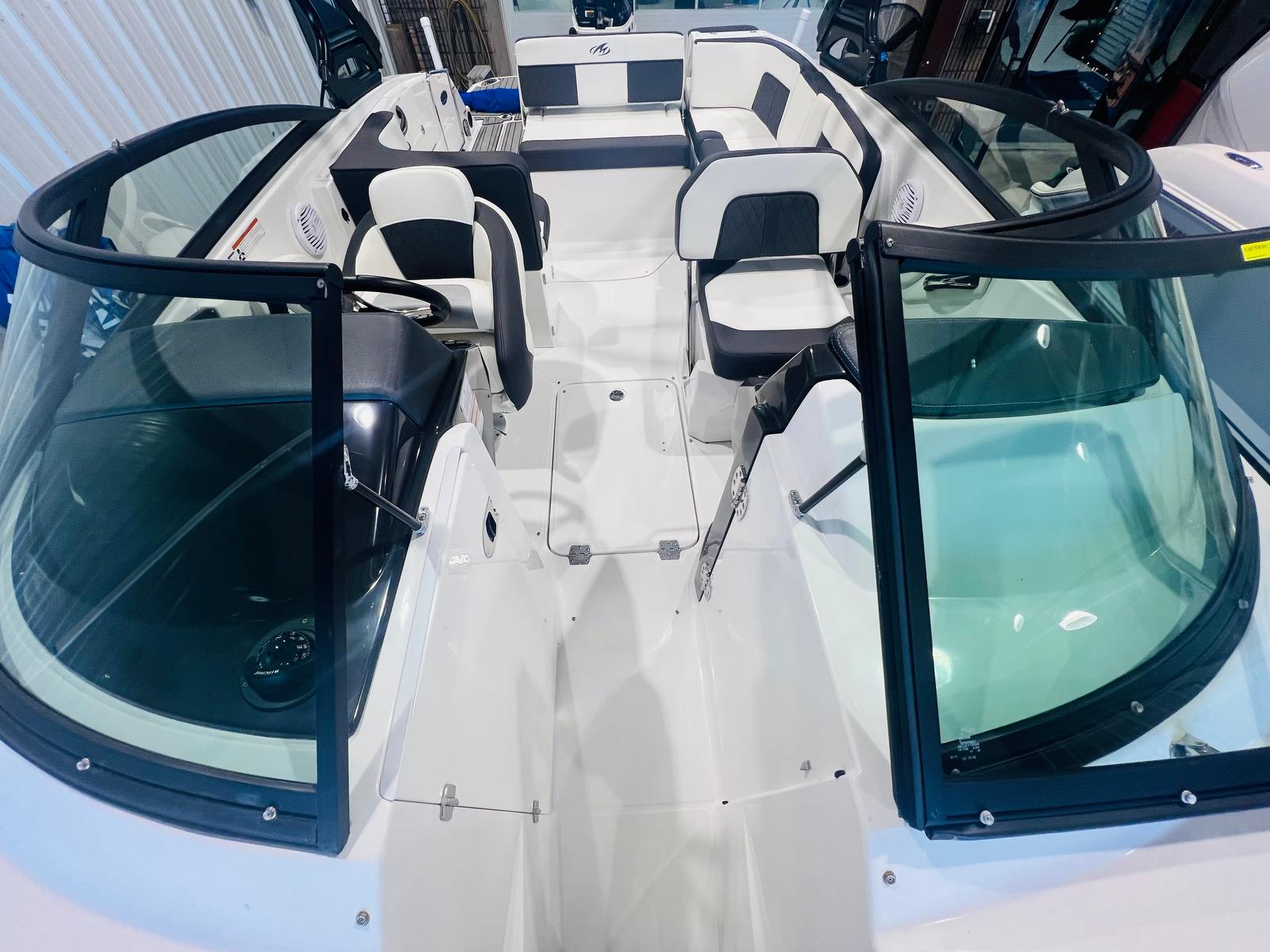 Practicality is at the core of the Monterey M-65’s design. The ample storage compartments keep your gear organized and out of the way, while the intuitive layout makes it easy to move around the boat safely. Docking is simplified thanks to the boat’s responsive handling and manageable size, allowing you to navigate marinas and tight spaces with confidence.Fuel efficiency is another key benefit of this Bowrider, helping you make the most of your time on the water without frequent stops at the fuel dock. The durable construction and quality materials ensure low maintenance and long-term reliability, so you can focus on enjoying your boating adventures rather than worrying about upkeep.