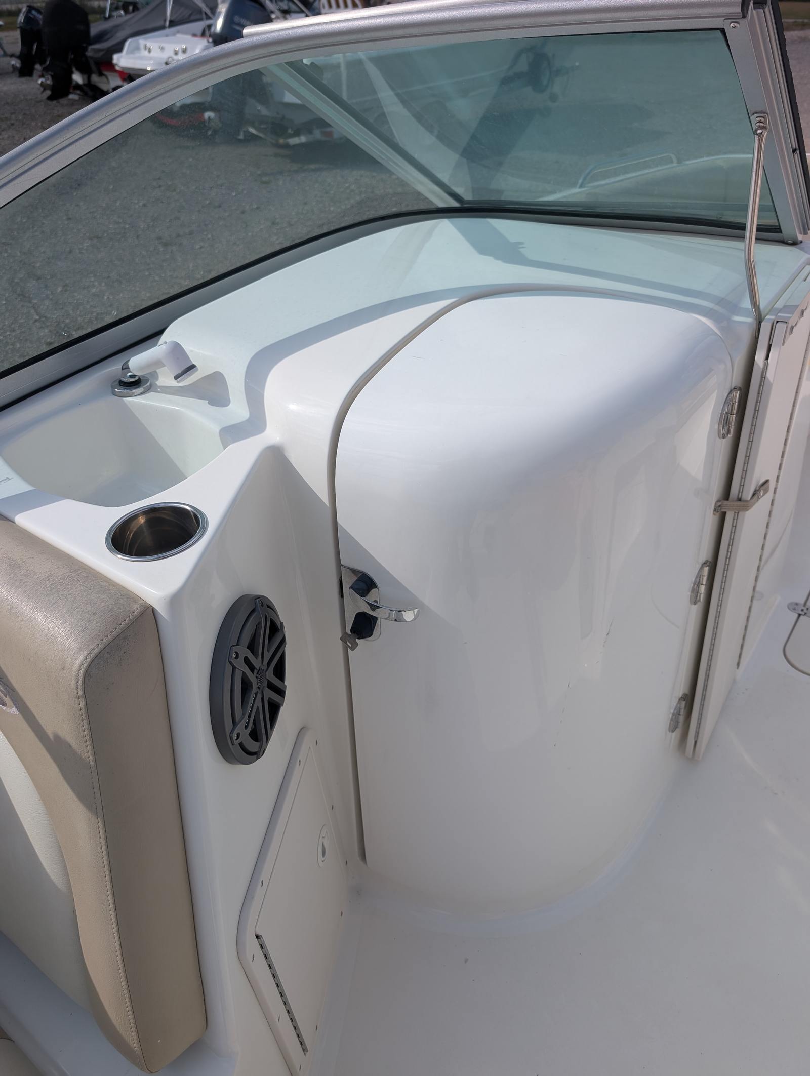 This Nauticstar boat for sale is packed with features that enhance both its functionality and comfort. The Dual Console design provides separate seating and storage areas, allowing for greater flexibility and convenience. The spacious cockpit and bow seating areas are perfect for relaxing, socializing, or enjoying a picnic on the water. The ergonomic helm station offers excellent visibility and easy access to controls, ensuring a stress-free driving experience. Ample storage compartments throughout the boat make it easy to stow away gear, life jackets, and other essentials, keeping the deck clutter-free and organized.
