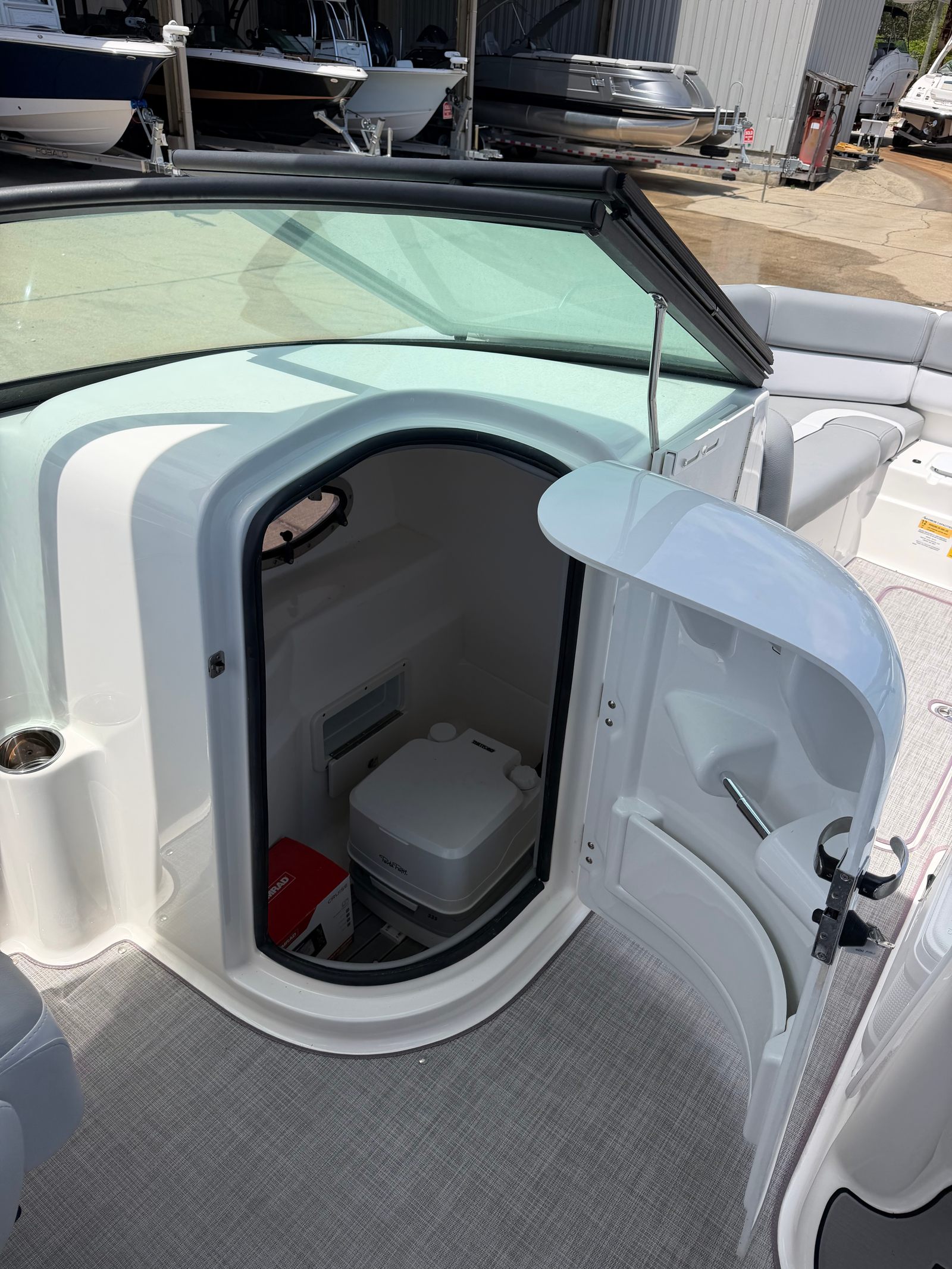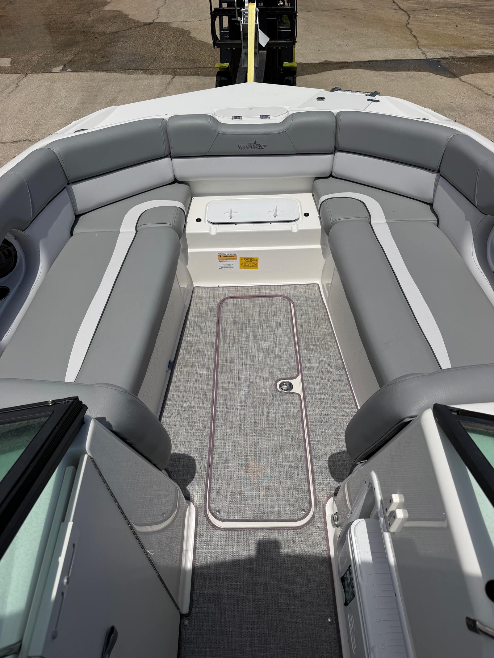 Awesome stepped hull design gives this boat an incredible ride, smooth, fast, and efficient. Great, roomy deck boat for the family to enjoy, whether you're cruising, hanging at the sandbar, or doing some light fishing.