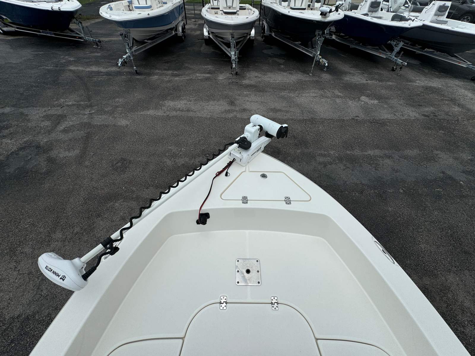 This Bay Boat is engineered for practicality and ease of ownership. The tandem axle trailer simplifies launching, hauling, and storing the boat, making it accessible for weekend getaways or spontaneous adventures. The hydraulic jackplate and trim tabs contribute to fuel efficiency and smooth handling, reducing operating costs and enhancing the overall boating experience. Storage compartments are thoughtfully integrated to keep gear organized and out of the way, allowing you to focus on enjoying your time on the water. The Minn Kota I Pilot trolling motor is a game-changer for anglers, providing hands-free operation and precise positioning for successful fishing trips.