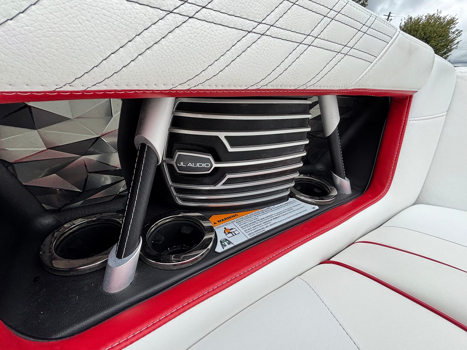 Easily surf left to right at the push of a button. Equipped with premium JL Audio, the digital screen makes it possible to control everything at the helm, keeps this boat at the top of the food chain in not only wake performance but also interior functionality.
