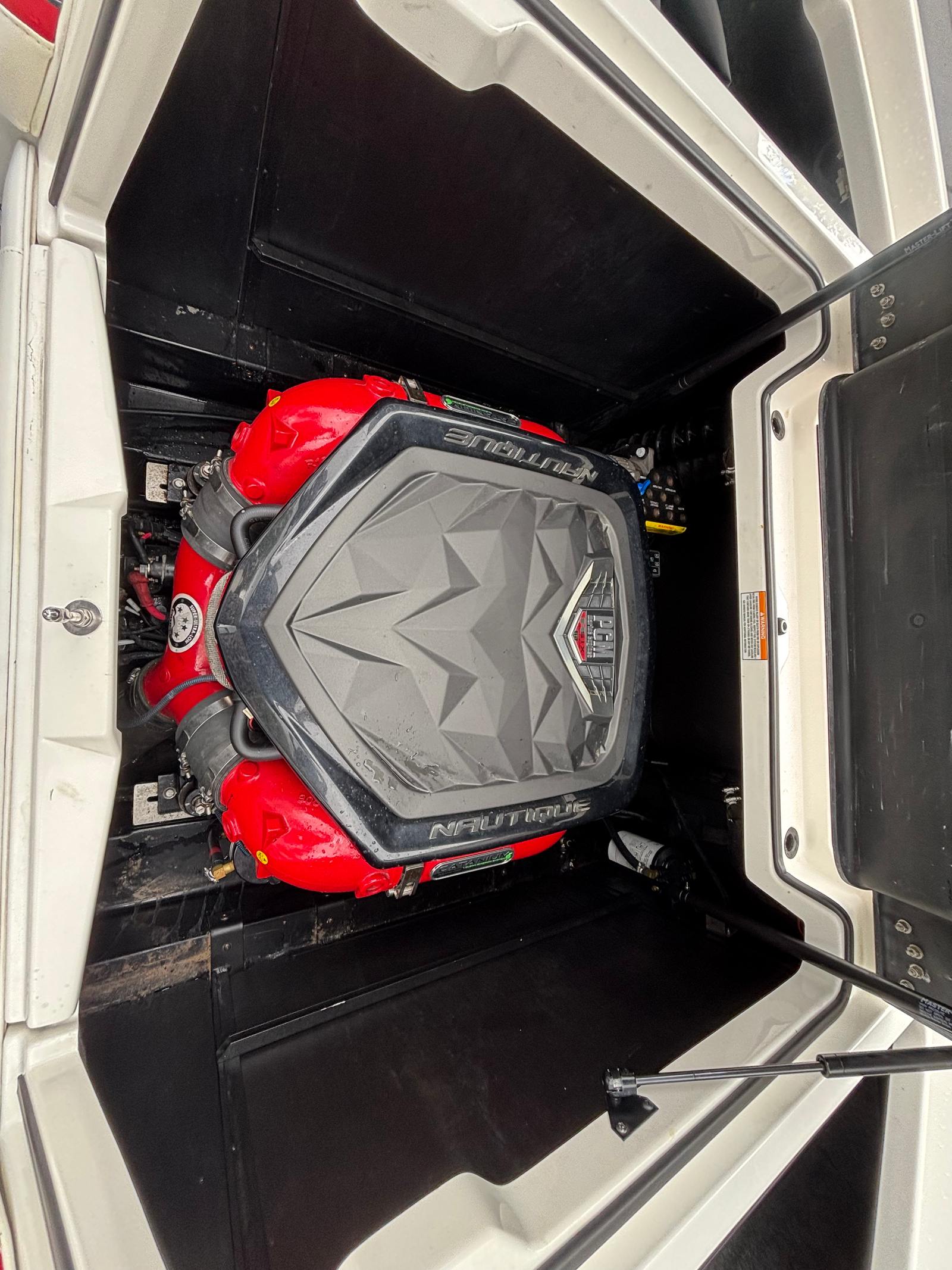 At the heart of this 2016 Nautique G23 is a powerful single engine delivering an impressive 355 horsepower. With 641 engine hours, this boat has been well-loved and is ready for many more adventures. The robust engine ensures that the G23 delivers the kind of exhilarating acceleration and top-end speed that wakeboarders and skiers crave. Whether you’re pulling up a rider for a smooth slalom run or creating massive wakes for wakeboarding tricks, the G23’s engine performance is both reliable and thrilling. The advanced hull design works in harmony with the engine to provide a smooth, stable ride, even in choppy conditions, making every outing enjoyable and safe.