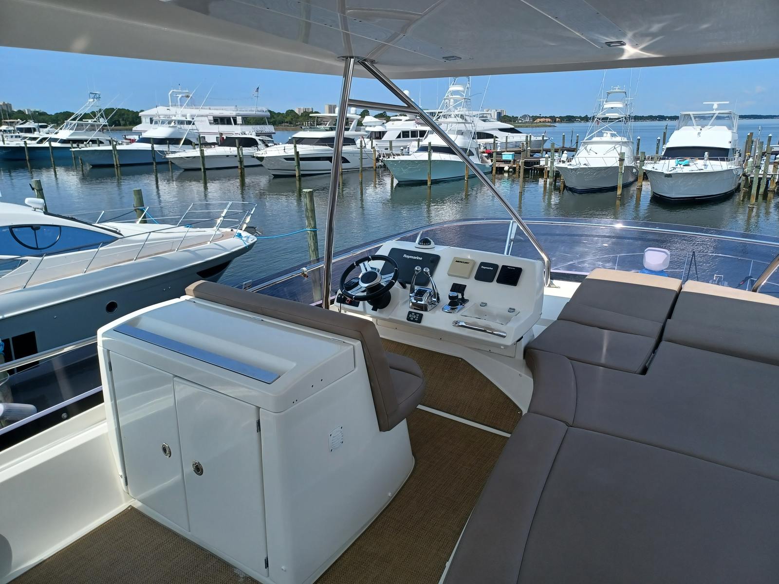 “Lovin Life” is a lightly used, Captain maintained yacht that has been thoughtfully cared for by her current Owners. The boat previously spent much of its life in freshwater on the Great Lakes. This particular Prestige 550 Flybridge is one of the few that has a hardtop rather than a canvas bimini making the spacious flybridge area the place to be underway complete with a wet bar, sink, electric grill and two refrigerators.
