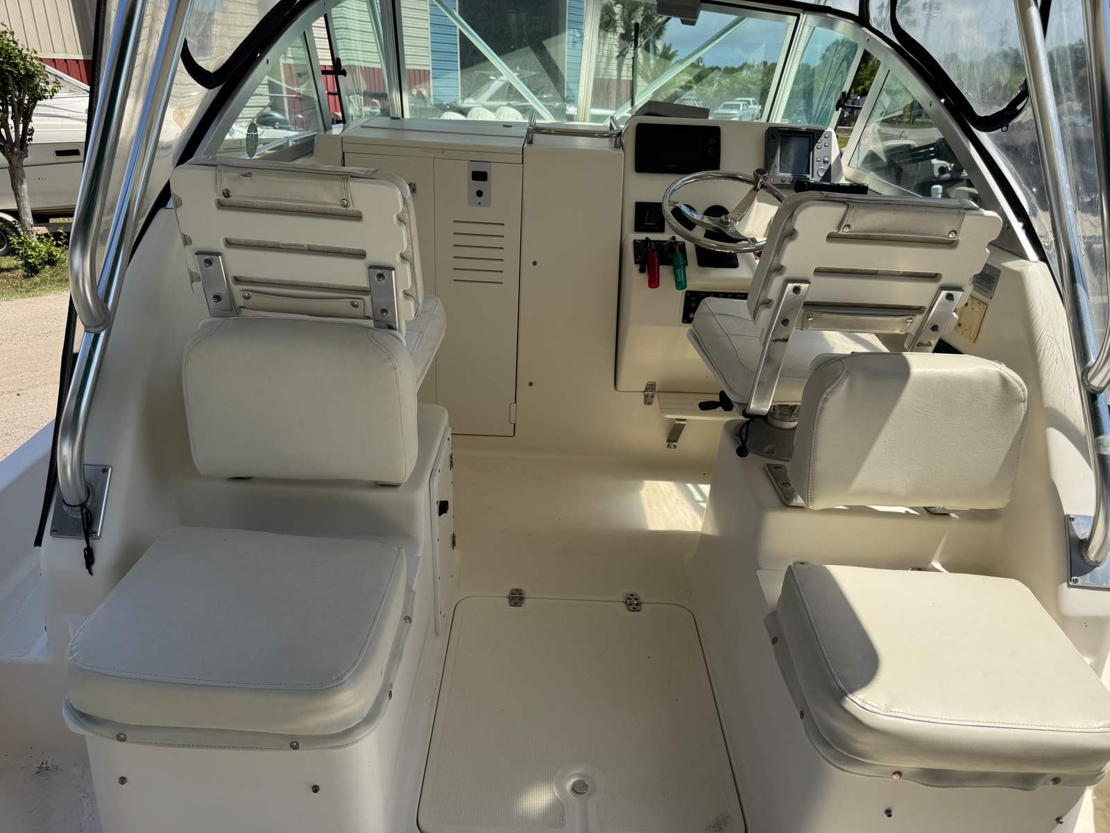 The 2001 Pursuit WA 2870 shines in a variety of scenarios. For fishing enthusiasts, the walkaround deck provides unobstructed access for casting and reeling in your catch, while the spacious cockpit accommodates all your gear and companions. Family outings are a breeze thanks to the comfortable seating, sheltered cabin, and smooth ride. If you’re seeking a platform for luxury getaways, the WA 2870’s combination of performance, comfort, and style makes it an excellent choice for weekend escapes or day trips to your favorite destinations.This walkaround boat for sale is also ideal for entertaining, with plenty of room for guests and the power to explore new waters with ease. Whether you’re planning a fishing tournament, a relaxing cruise, or an action-packed day of water sports, the Pursuit WA 2870 is ready to deliver.