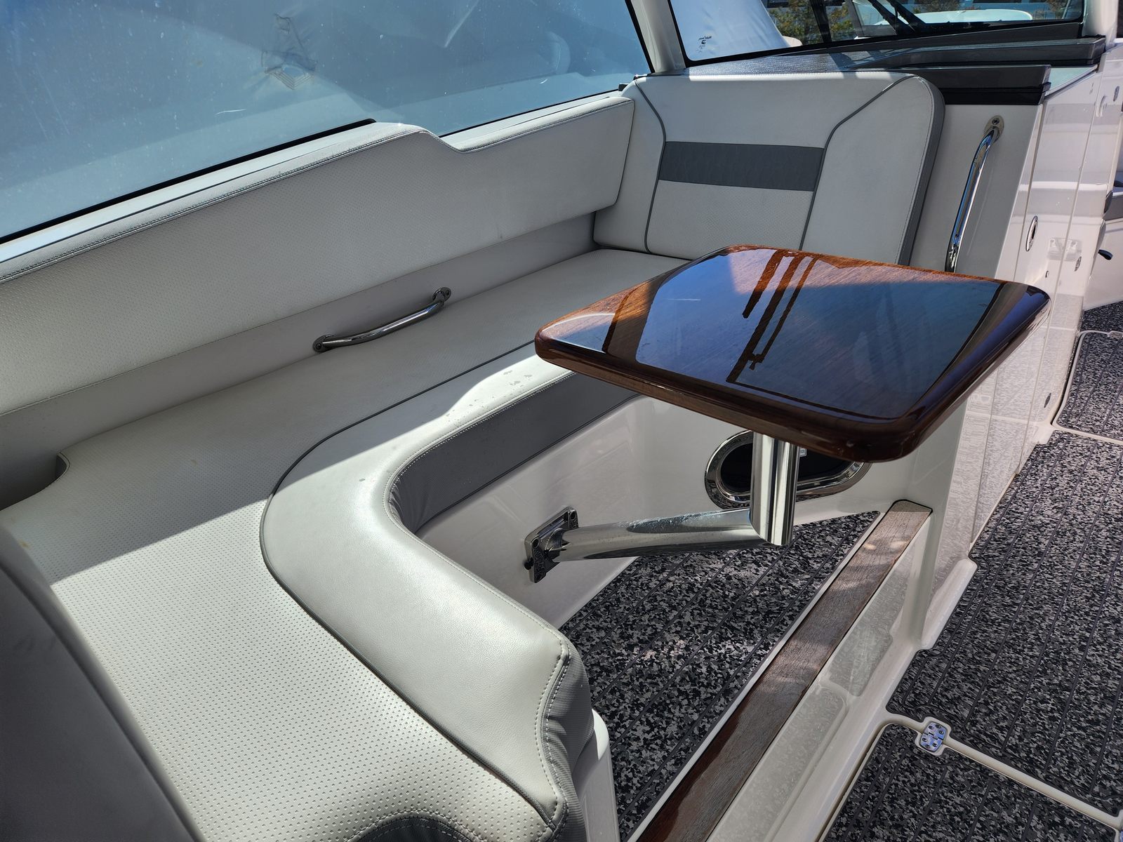 This Pursuit boat for sale is as practical as it is enjoyable. The dual console configuration makes docking and maneuvering straightforward, even for less experienced boaters. Ample storage compartments keep your belongings organized and out of the way, while the well-designed helm offers excellent visibility and control. The boat’s efficient engines provide a balance of power and fuel economy, allowing you to spend more time on the water and less time at the fuel dock. Whether you are planning a weekend getaway or a quick afternoon escape, the Pursuit DC 326 is equipped to handle it all with ease.