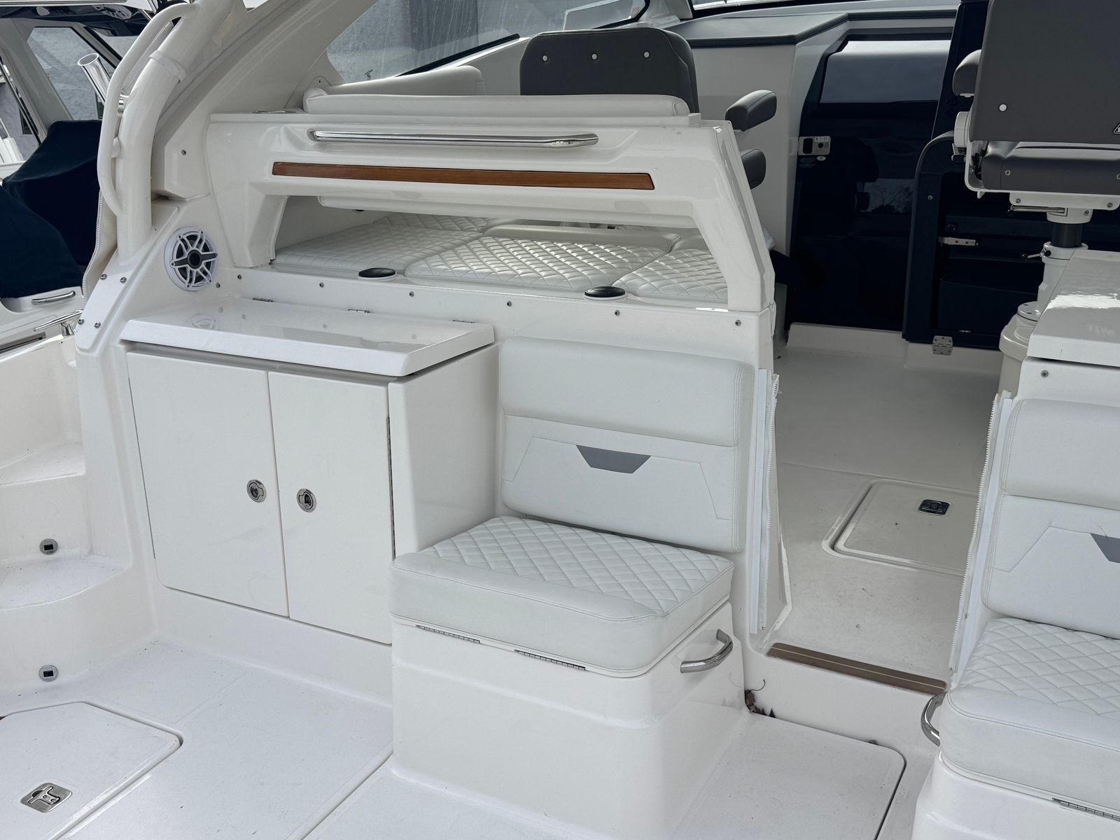 Equipped with three powerful engines, the Pursuit 405 OS boasts a combined 1350 horsepower, ensuring a thrilling ride and responsive handling. With only 1 engine hour, these motors are virtually new, promising years of reliable performance and efficiency. The triple-engine setup provides impressive acceleration, smooth cruising, and the ability to tackle a variety of water conditions with confidence. Whether you’re navigating coastal waters or exploring inland lakes, this cruiser boat for sale offers the perfect balance of speed and stability.
