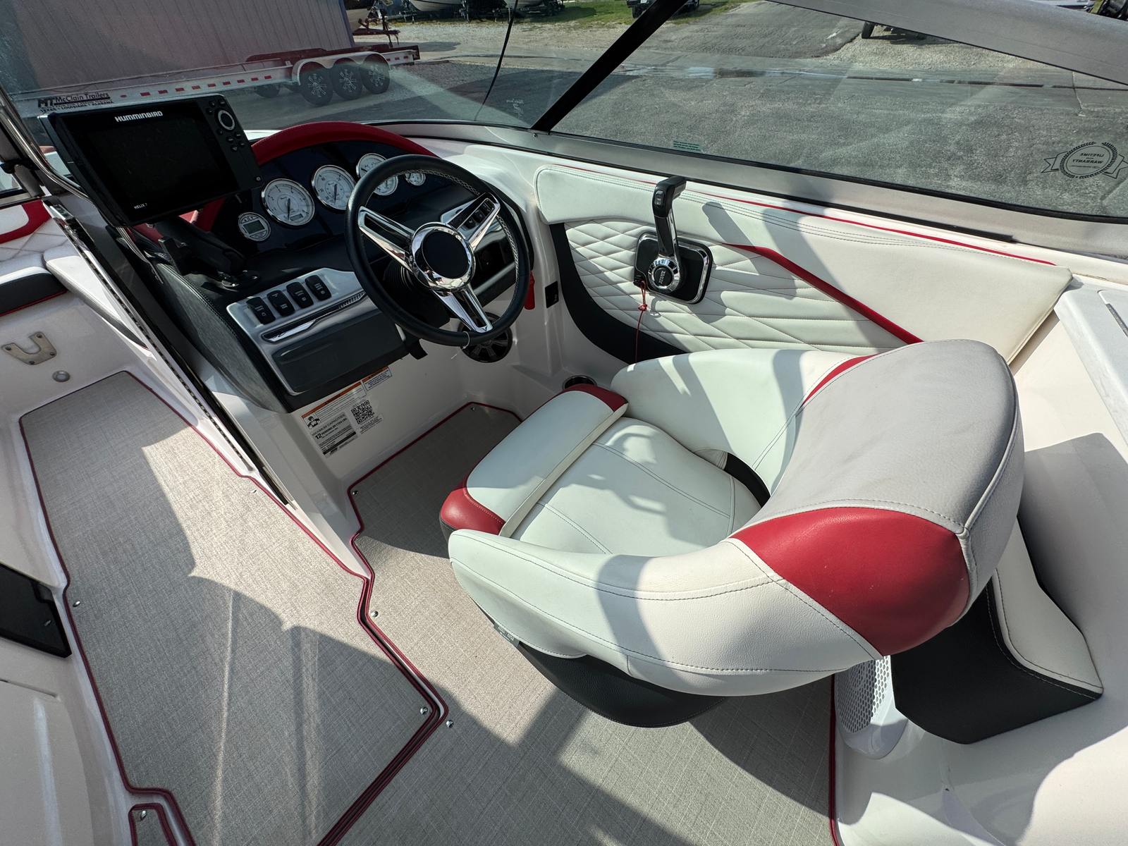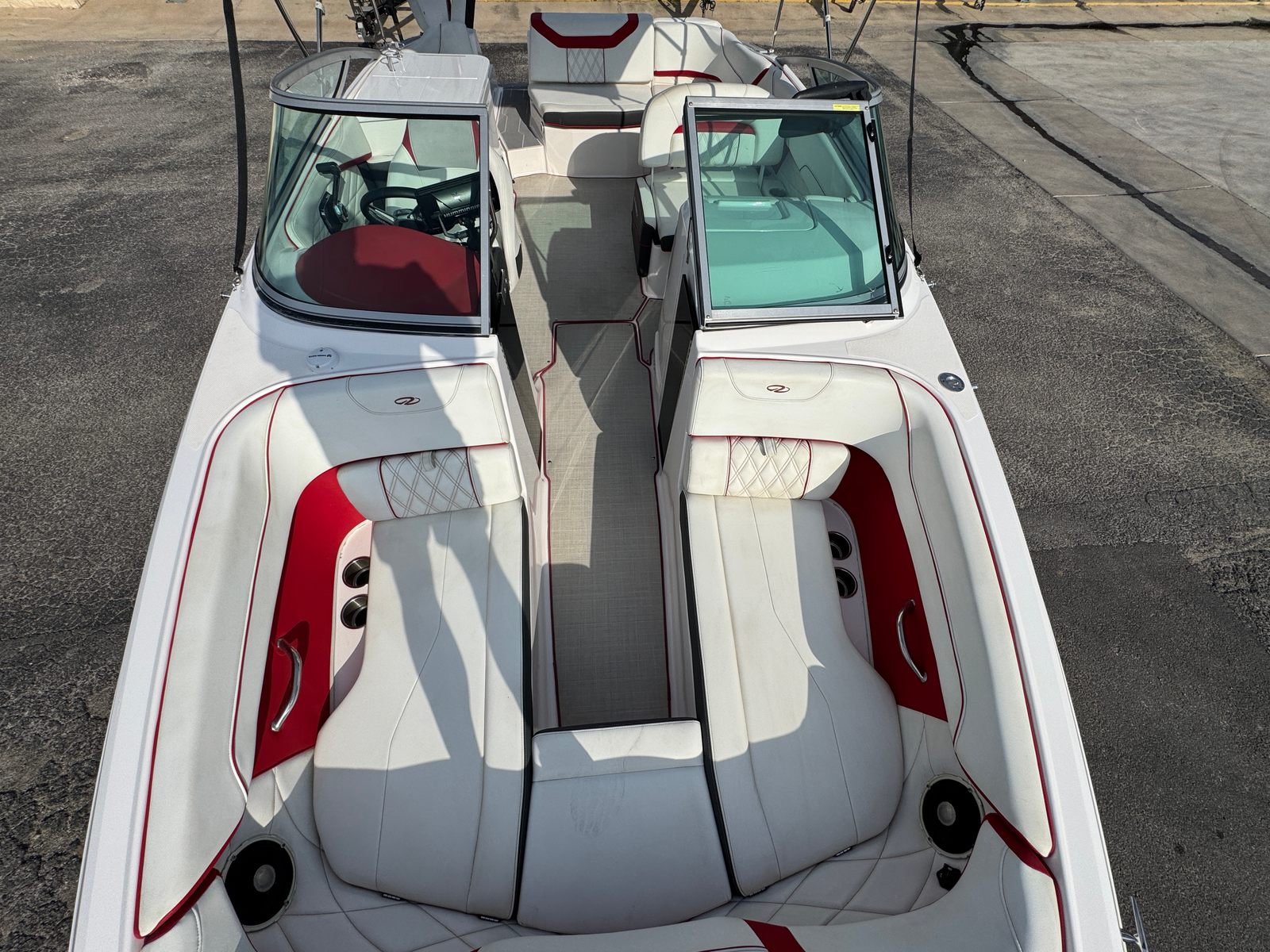 The Regal 22 Fasdeck is renowned for its thoughtful design and attention to detail, offering a range of features that enhance both functionality and enjoyment. The spacious Bowrider layout provides ample seating for family and friends, making it ideal for social gatherings and group outings. The open bow area invites relaxation and conversation, while the cockpit is designed for both comfort and convenience. High-quality materials and finishes throughout the boat reflect Regal’s commitment to craftsmanship and durability.The helm is ergonomically designed for intuitive control, with clear instrumentation and easy access to all essential functions. The swim platform at the stern offers a convenient spot for water entry and exit, perfect for swimming, snorkeling, or simply lounging by the water’s edge. Storage compartments are strategically placed to keep gear organized and out of the way, ensuring a clutter-free environment for all your adventures.